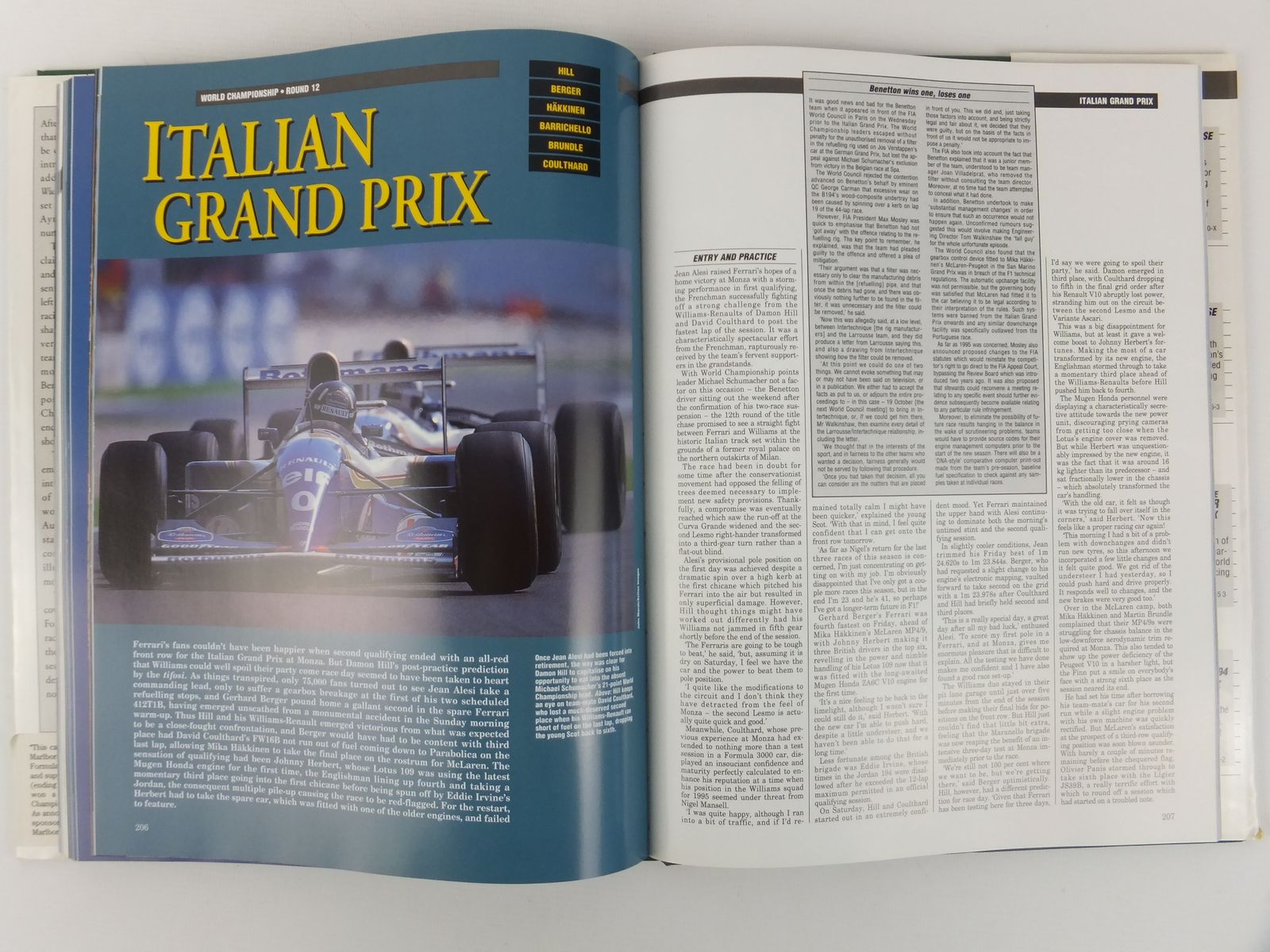 Fine condition in a slightly better than very good dustwrapper. Large format. Colour photos. 44th year. Foreword by Michael Schumacher. The season was over-shadowed by the tragic deaths of Roland Ratzenberger and Ayrton Senna at Imola.