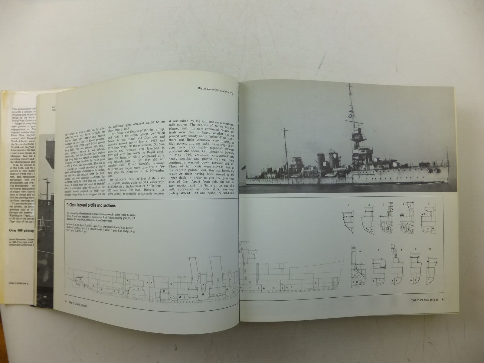 Very good condition in a almost very good dustwrapper. Oblong format. B/w photos. 444 pages including index and appendices. A detailed account of the design, construction and technical history of the cruisers that served in the Royal Navy during the second world war. 121 cruisers are described with over 60 sets of detailed plans.
