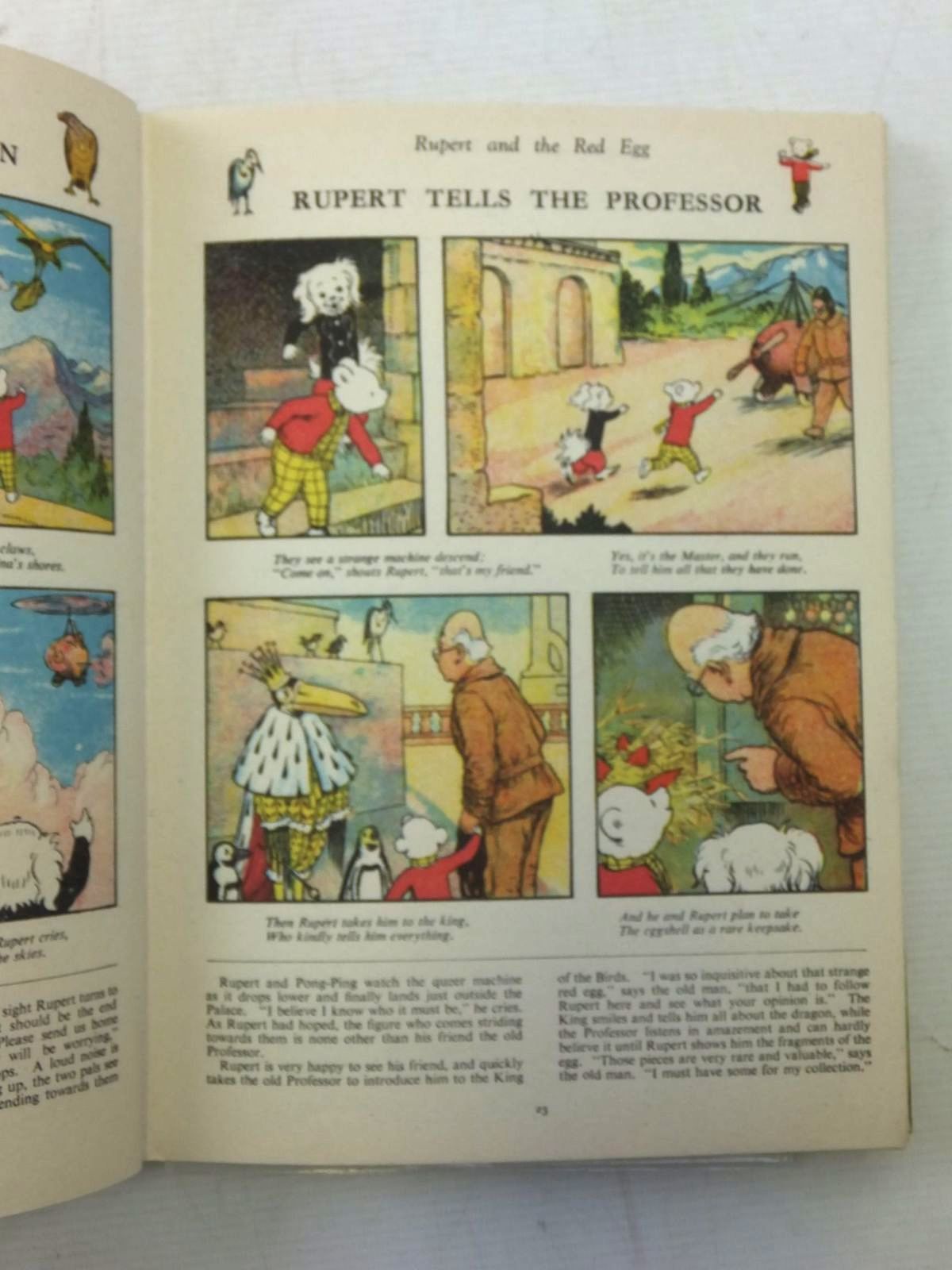 Slightly better than very good condition. The last hardcover annual to be published during the war years and widely considered to be the best Rupert annual ever. Front cover shows Rupert holding a paddle and waving while Algy looks on from a little boat. First story Rupert and the Red Egg. 118 pages.