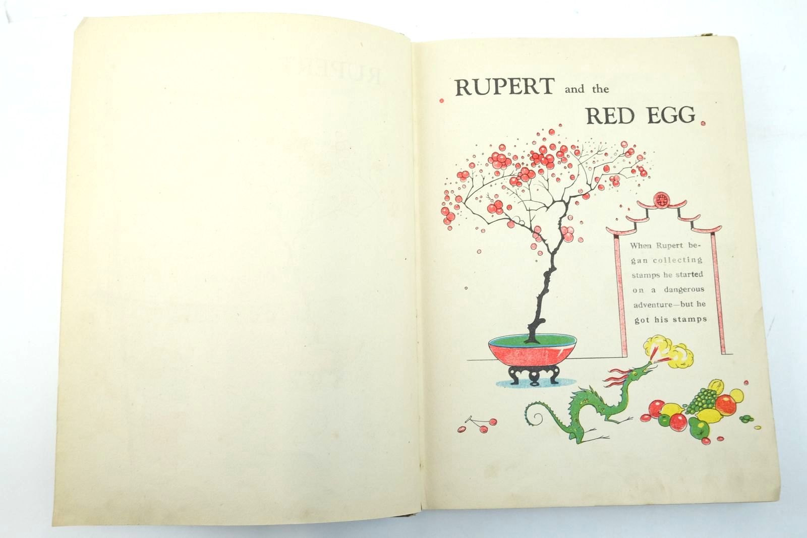 Almost very good condition. The last hardcover annual to be published during the war years and widely considered to be the best Rupert annual ever. Front cover shows Rupert holding a paddle and waving while Algy looks on from a little boat. First story Rupert and the Red Egg. 118 pages.