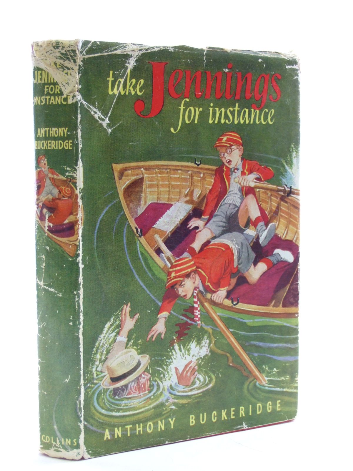 Jennings joins the Natural History club. Colour frontis, 4 b/w illustrations. Red boards, black title to spine. 256 pages, top edge red. Spine bumped and a few tiny dents to cover edges. Old tape marks to endpapers and half title-page and some light browning to endpapers. Foxing to textblock. Slight surface paper loss (from pencil erasure) to verso of frontis. Very small annotation mark to margin of page 156. Dustwrapper is edge rubbed with minimal loss at corners.