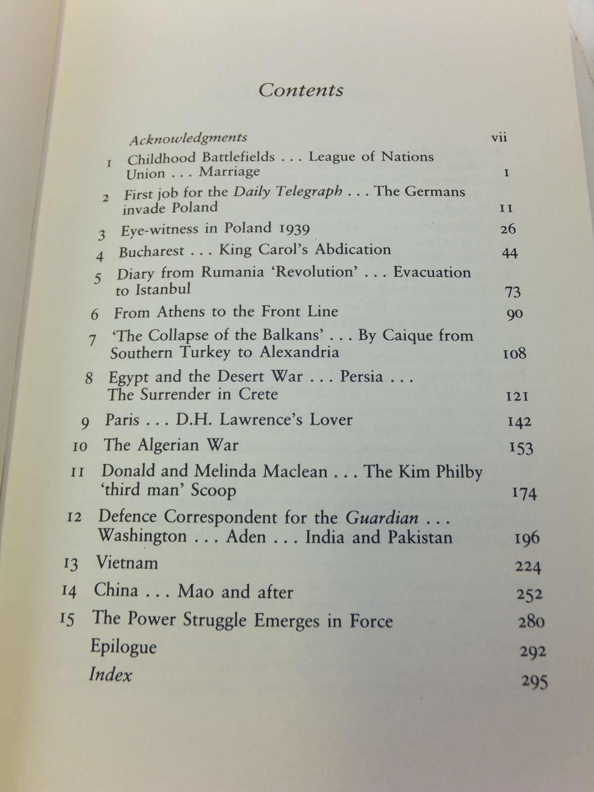 Nearly fine condition in a very good dustwrapper. The memoirs of a brave, indefatigable woman: war correspondent in Poland as German tanks rolled in, under fire in Vietnam, exposing the Kim Philby story, reporting from China during the Cultural Revolution - witnessing the student uprising of 1989... Maroon boards, gilt title to spine. B/w photos.