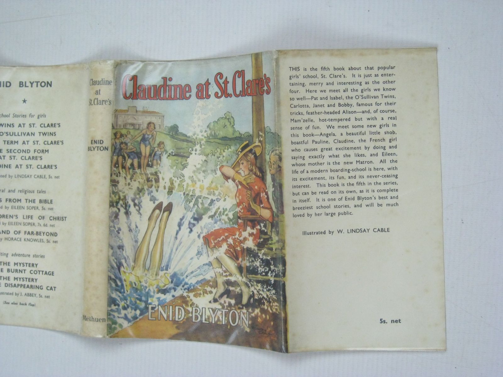Very good condition in a very good dustwrapper. The 5th story of St. Clare's. Pink cloth, dark titles and vignette. B/w illustrations. 153 pages.