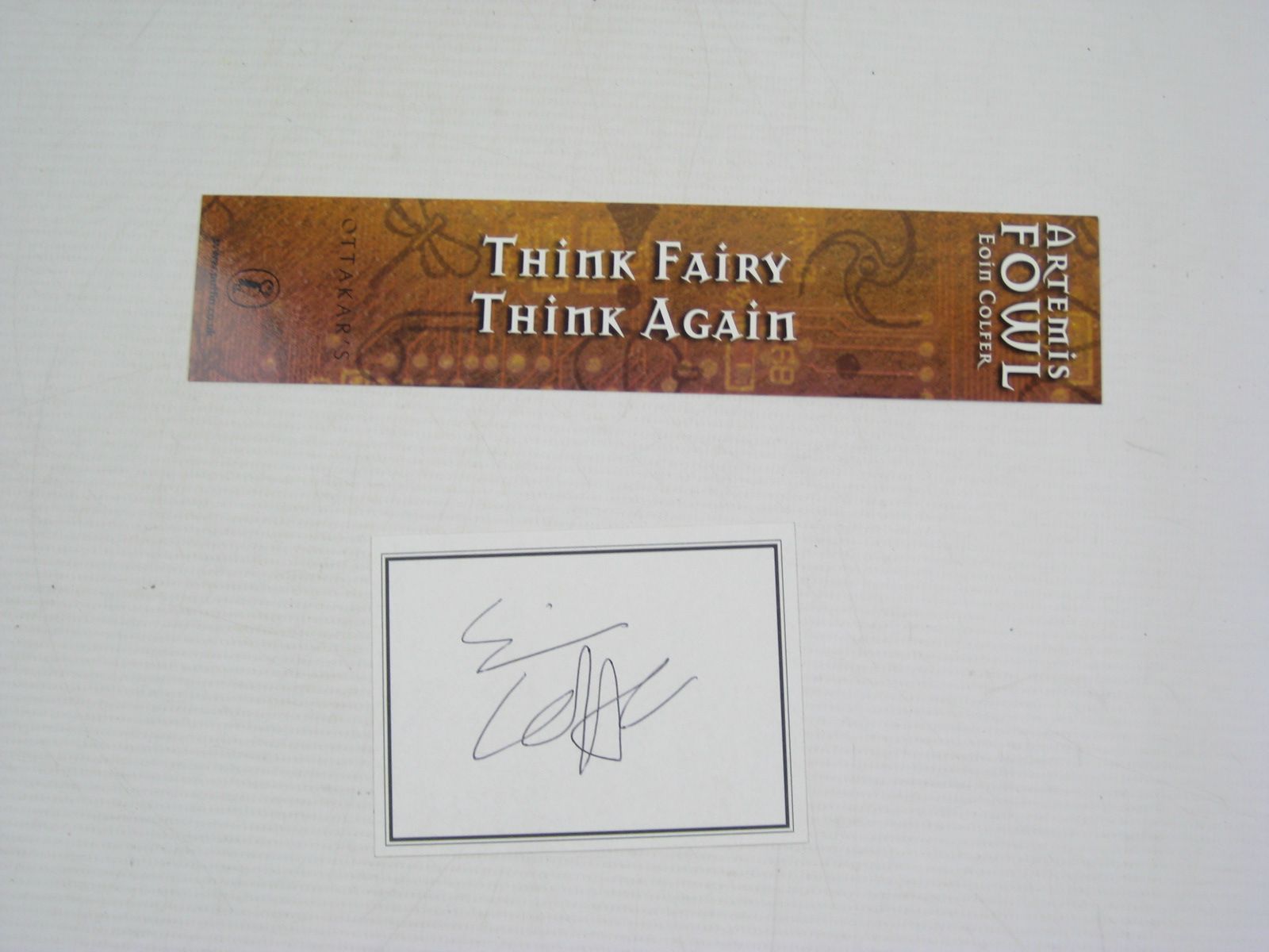 SIGNED by author on a white label with black border which is loosely inserted in book, along with promotional bookmark.