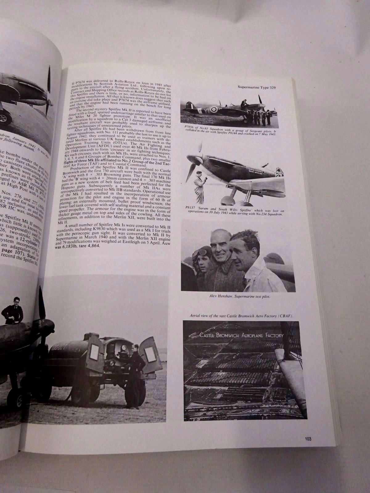 Nearly fine condition in a nearly fine dustwrapper. Revised edition. The full technical, design and manufacturing story of all marks and variants of Spitfires, in all configurations and modified forms, plus the Seafire and 'Super Seafire', Spiteful and Seafang. Large, heavy format. Colour pictorial endpapers. B/w photos and sketches. Colour illustrations. XXII and 650 pages.