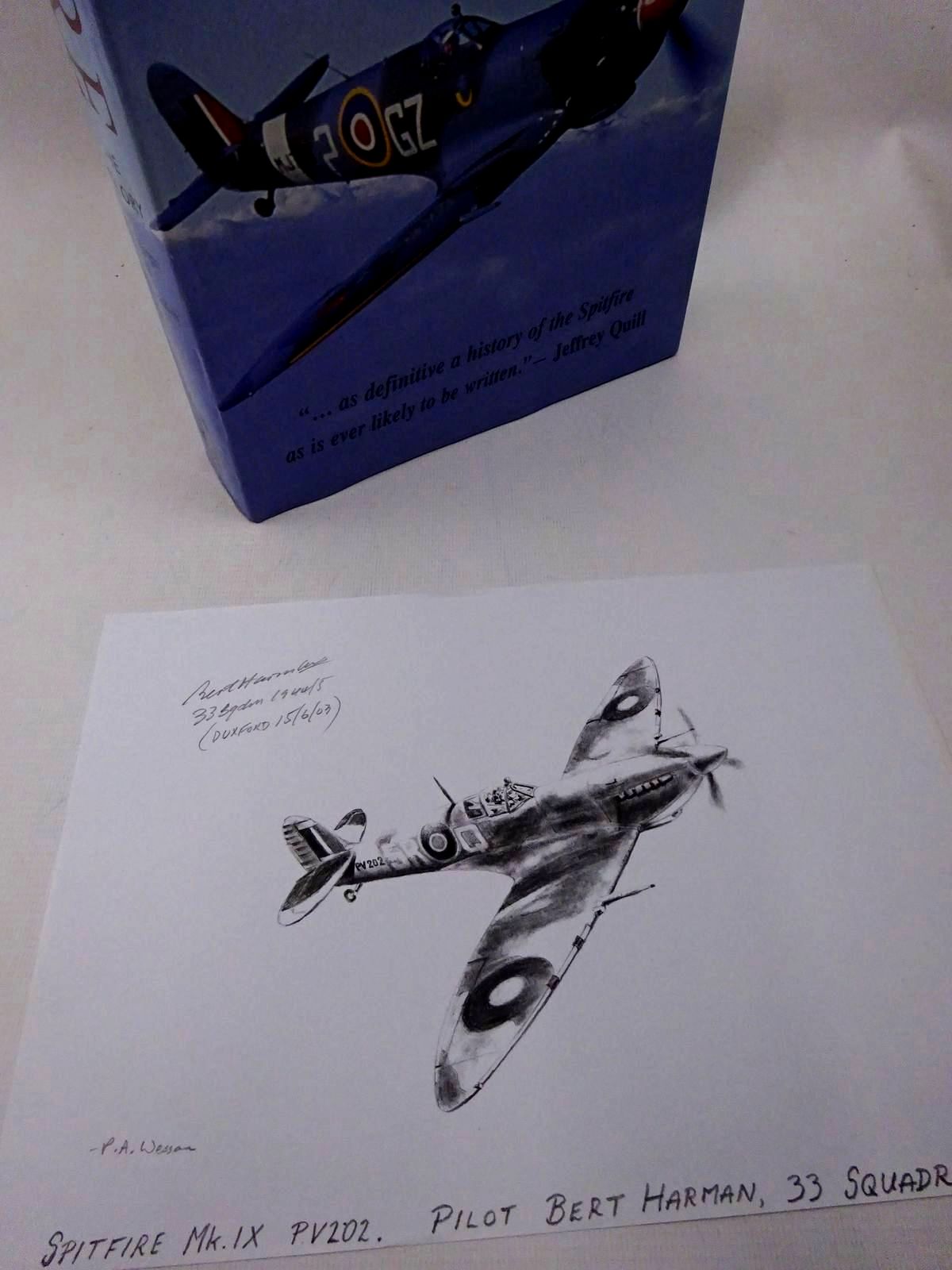 Signed in ink by 7 squadron members to colophon page. Included is a pencil sketch print of Spitfire Mk.IX PV202 signed by pilot Bert Harman of 33 Squadron. Dustwrapper is lightly edge-creased.