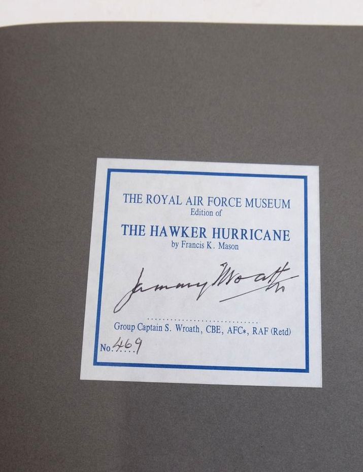 SIGNED by the principal RAF test pilot for the Hawker Hurricane, Group Captain S. Wroath, CBE, AFC*, RAF (Retd) on bookplate to front endpaper and this is copy 469. Contents clean. A lovely copy.