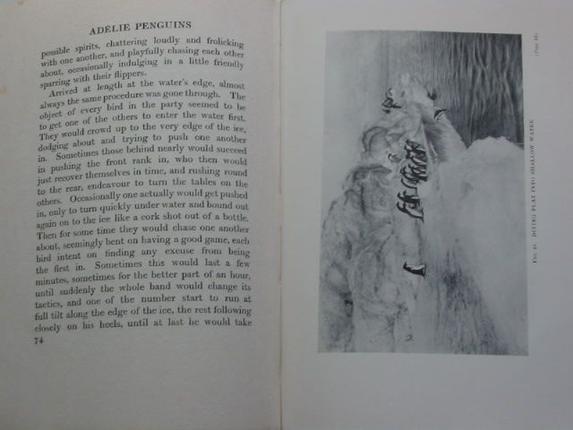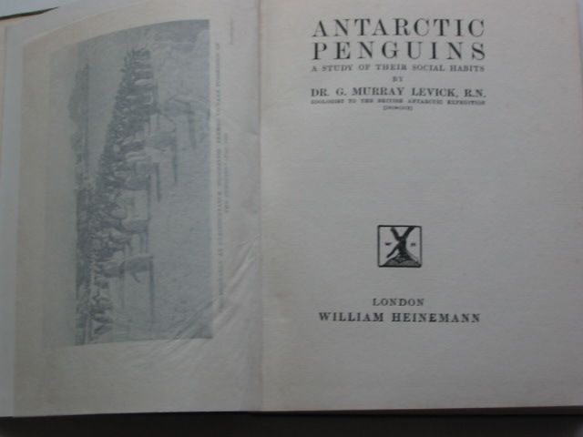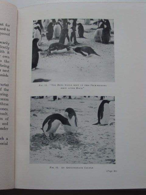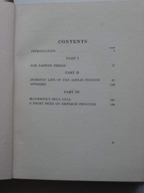 Very good condition. Green pictorial cloth, white title to front. B/w photos. A study of the social habits of the penguins, focusing mainly on the Adelie penguin. x + 140 pages.