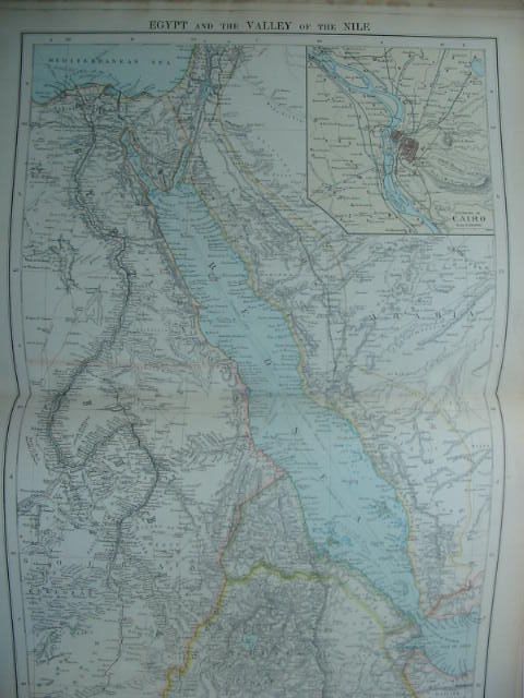 Almost very good condition. Very large format. Red cloth, gilt titles with black floral decorations. A series of 70 plates containing over 150 maps, plans and diagrams illustrating physical, political, and commercial geography. Maps are in full colour.