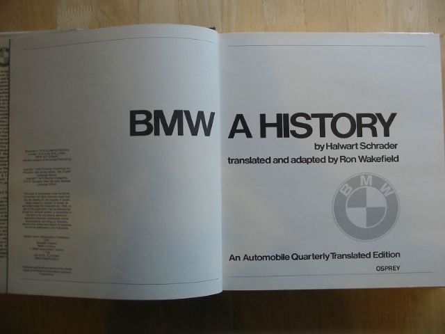 Fine condition in a nearly fine dustwrapper. A definitive history of the BMW of special importance to collectors. A special chronological section of 146 illustrated pages contains a technical description and photographs of every Wartburg, Dixi and BMW automobile built from 1899 to the present. Large format. Blue cloth boards, silver title to spine. Colour and b/w photos. 392 pages.