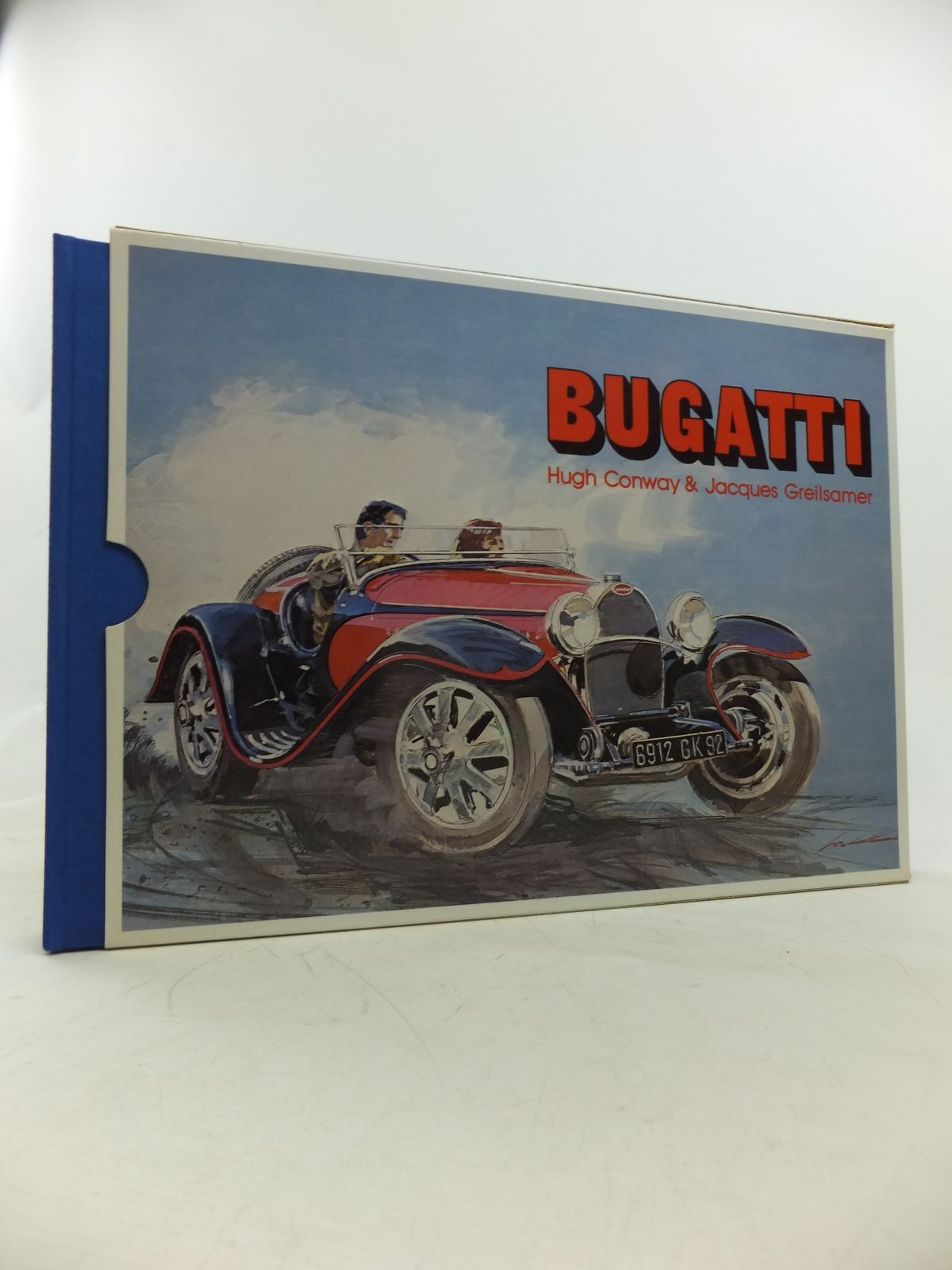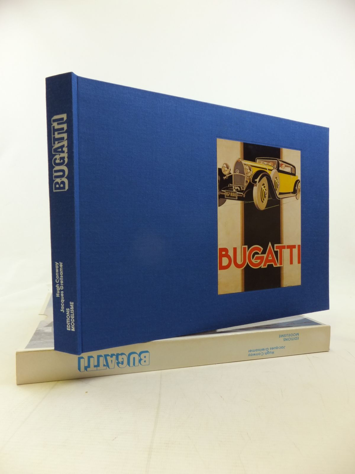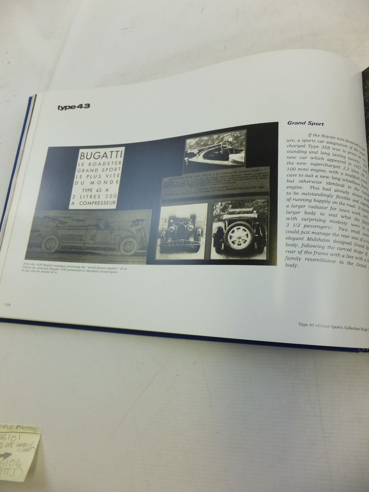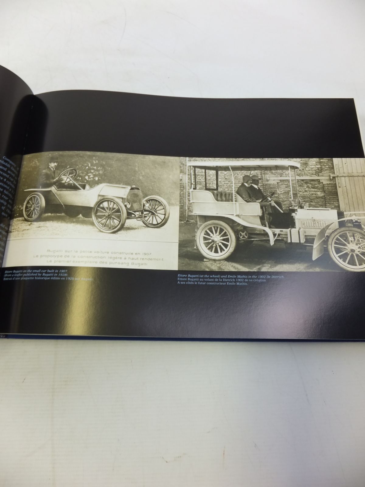 Slightly better than very good condition. Large oblong format. Blue cloth, white title to spine. Colour photo onlay to front cover. Superb colour and b/w photos of the Bugatti car range. Text in French and English.