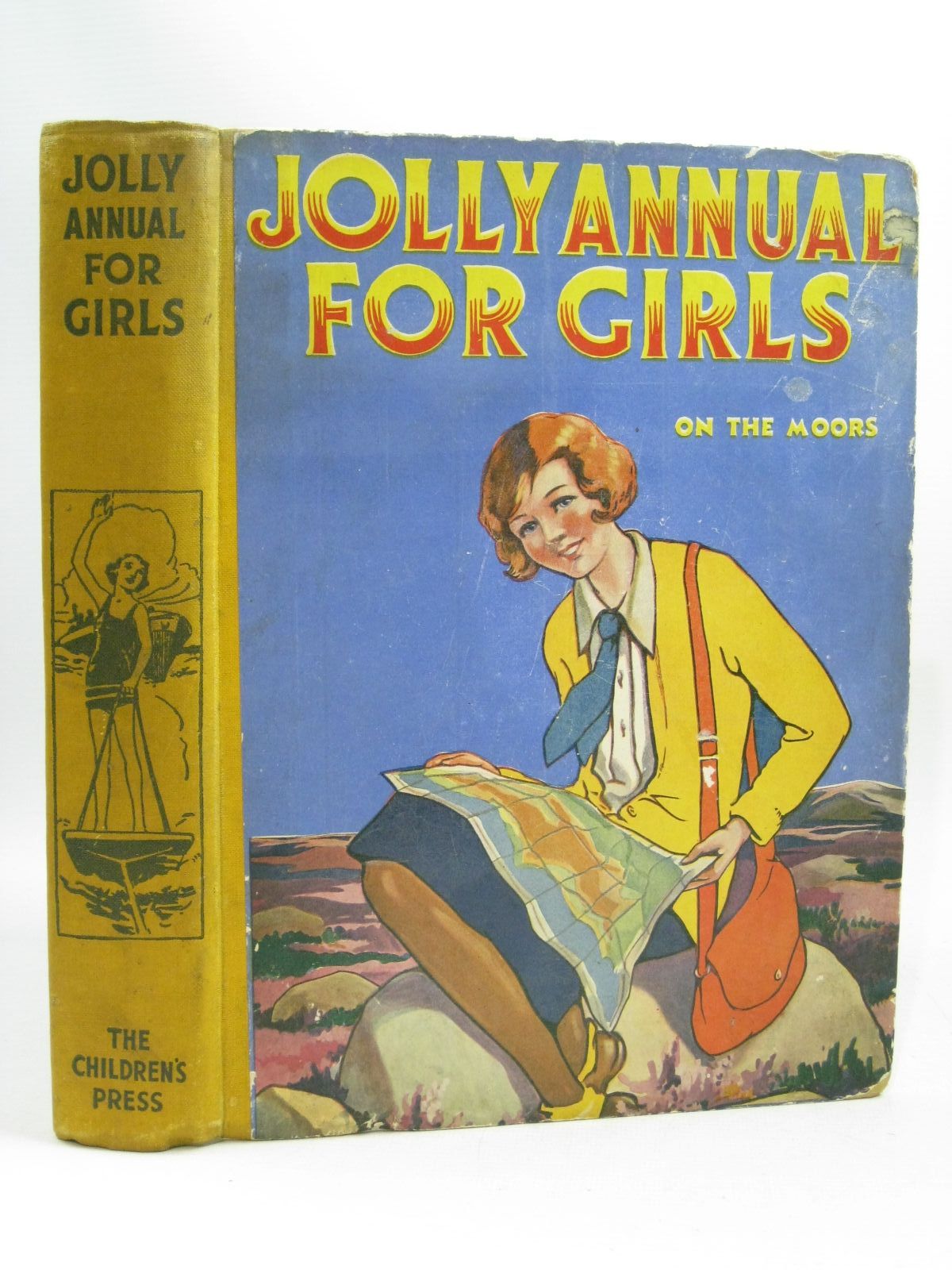 Almost very good condition. A Delightful Collection of Girls' Stories. Large format. Cloth spine with black title and picture. Pictorial front cover shows girl sitting on stone on the moors, with map in hand. 22 stories, first is 'School Days At Beverley' by Herbertson. Colour plates and b/w illustrations.