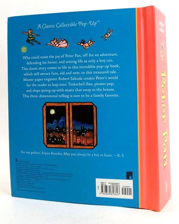 Very good condition. A Pop-Up Adaptation of J.M. Barrie's original tale. Master paper engineer Robert Sabuda creates Peter's world for the reader to leap into: Tinkerbell flies, pirates pop, and ships spring up with masts that sway in the breeze. A fat volume. Matt pictorial boards. Colour illustrations. Intricate pop-ups!