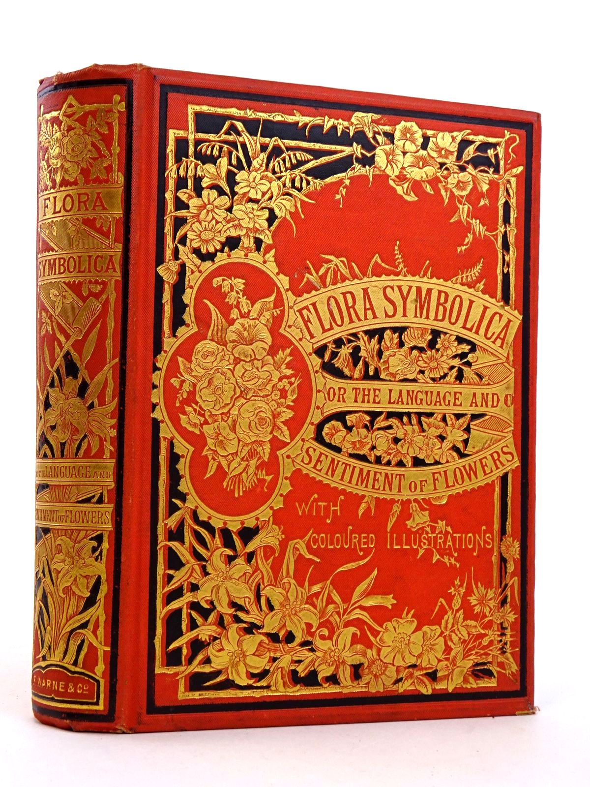 Very good condition. Orange, gilt and black pictorial binding with gilt titles. Bevelled edges. 16 tissue guarded choromolithographic plates plus illustrated title page. All edges gilt.