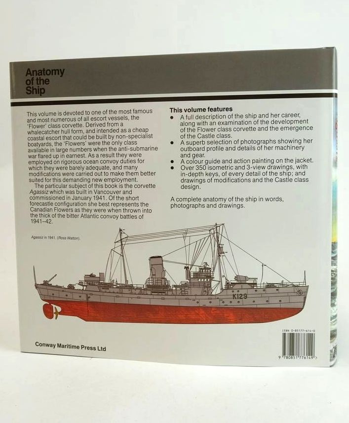 Nearly fine condition in a nearly fine dustwrapper. This volume is devoted to one of the most famous and most nuerous of all escort vessels, the 'Flower' class corvette. The particular subject is the corvette Agassiz which was build in Vancouver and commissioned in January 1941. Of the short forecastle configuration she best represents the Canadian Flowers as they were when thrown into the thick of the bitter Atlantic convoy battles of 1941-42. A complete anatomy of the ship in words, photographs and drawings. Grey cloth boards, gilt title to spine. B/w photos and drawings. 160 pages.