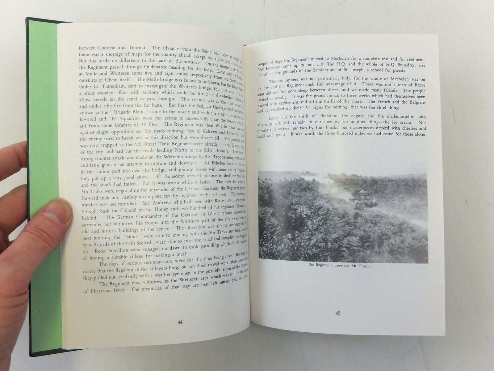 Fine condition. Recce Squadron 5th Royal Inniskilling Dragoon Guards 1942-1946. Green leatherette covers, gilt titles. B/w photos. 120 pages.
