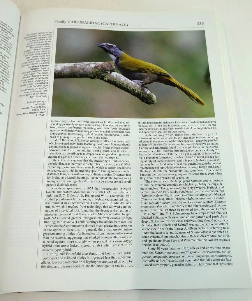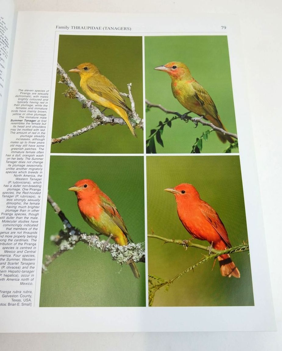 Very light scuff to front board, lower corner of front board lightly bumped. Text block very slightly grubby, top edge has a few minor foxspots. Contents clean. White pictorial dustwrapper is lightly creased at bumped corner. Includes laminated Index of Passerines, loosely inserted. Overall, a very nice copy.