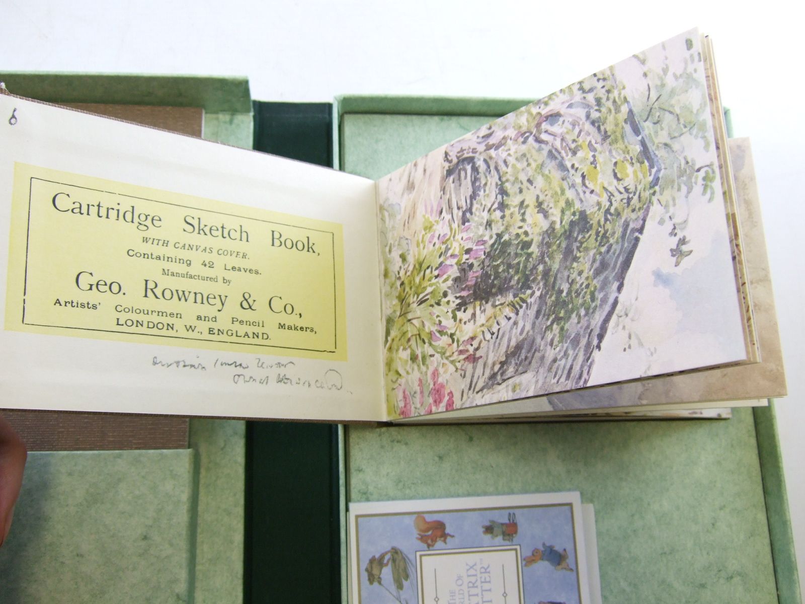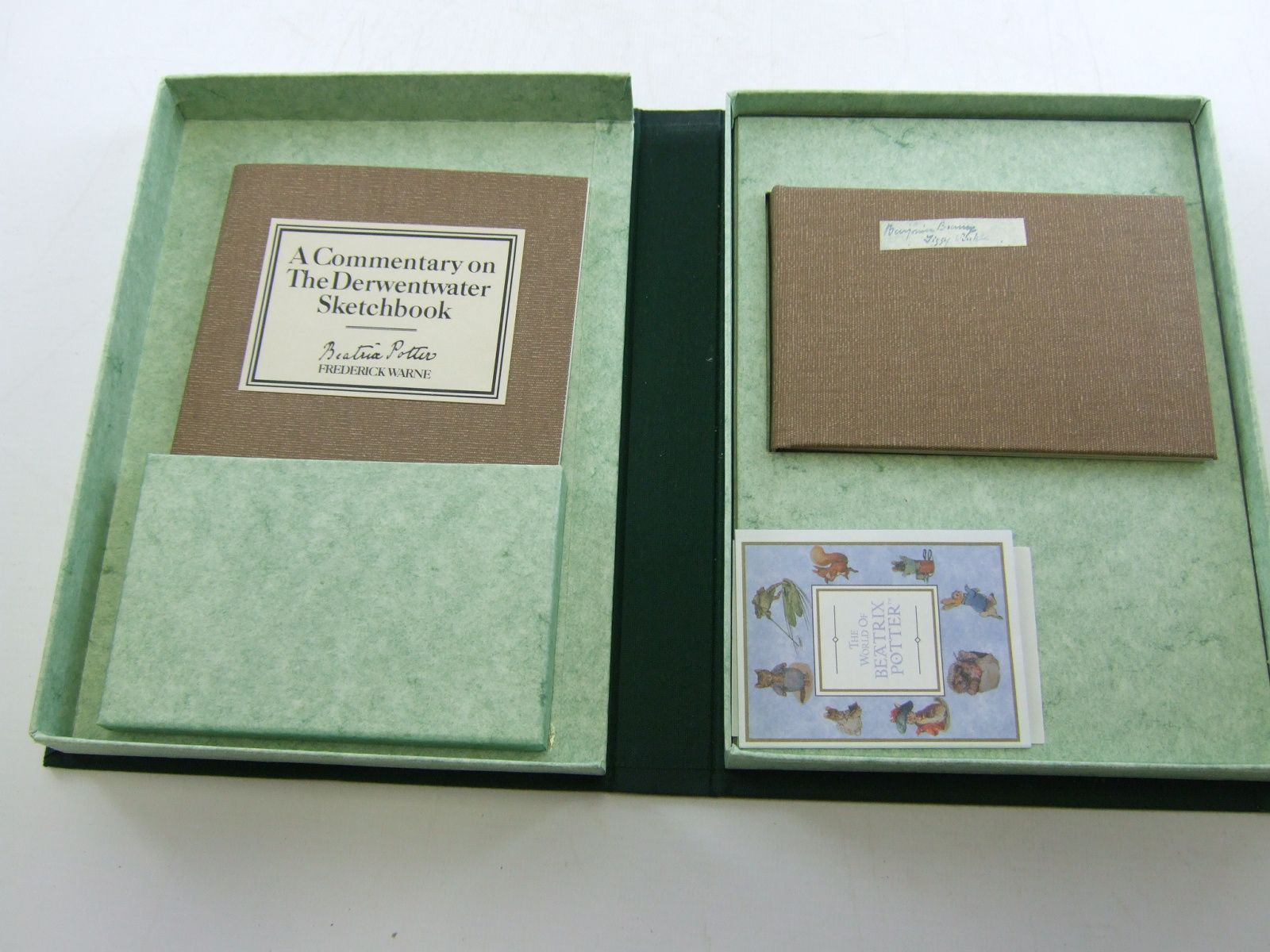 As new condition. Commentary and facsimile sketchbook printed in a limited edition of 250 copies. Small, oblong sketchbook is one which was completed in 1903 by Potter with watercolours of scenes from around Derwentwater. Commentary contains 39 pages of text and b/w illustrations. Contained in a green cloth presentation box with gilt title to front and pockets inside for commentary and sketchbook.
