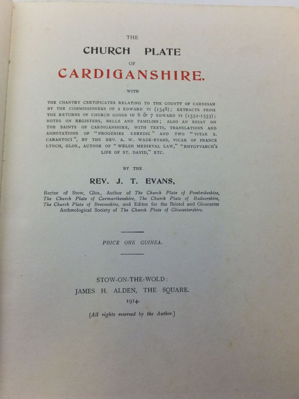 THE CHURCH PLATE OF CARDIGANSHIRE