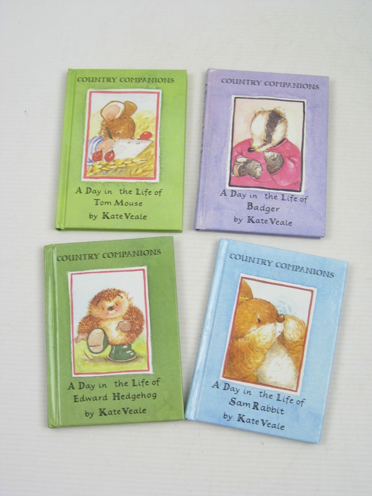 Slightly better than very good condition. A set of four books contained in pictorial slipcase: A Day in the Life of Edward Hedgehog; A Day in the Life of Badger; A Day in the Life of Tom Mouse and A Day in the Life of Sam Rabbit. Each volume is small format, has glazed pictorial boards and cute colour illustrations.