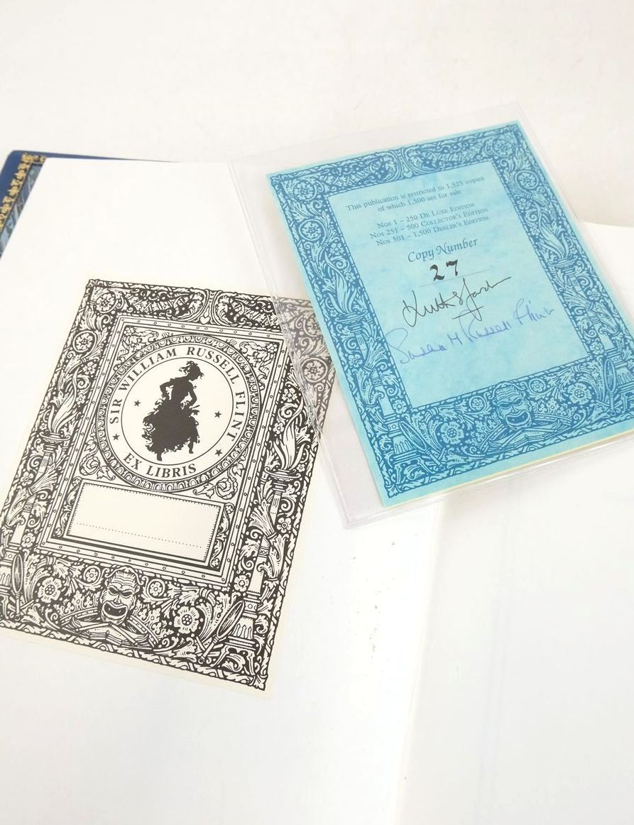 Slightly better than very good condition. Together with a Review of Fine Books and Other Collectable Ephemera. Title to spine is 'Sir William Russell Flint R.A. A Catalogue Raisonne vol II'. This is the De Luxe Edition, limited to 1,525 copies of which 1,500 are for sale nos 1-250 are De Luxe. Large format. Blue leather binding, gilt title to spine, vignette to front. All edges gilt. Marbled endpapers. Colour & b/w illustrations.