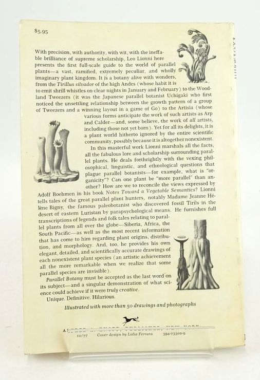 Very good condition. A plant world hitherto ignored by the scientific community possibly because it is altogether nonexistent. White pictorial card wraps. B/w illustrations.