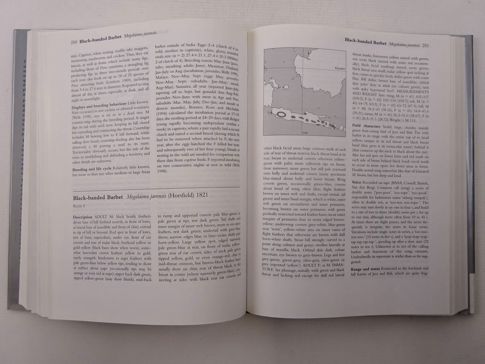 Fine condition in a fine dustwrapper. Large format. Black cloth boards, silver title to spine. Ramphastidae, Capitonidae and indicatoridae. Colour and b/w illustrations, and maps.