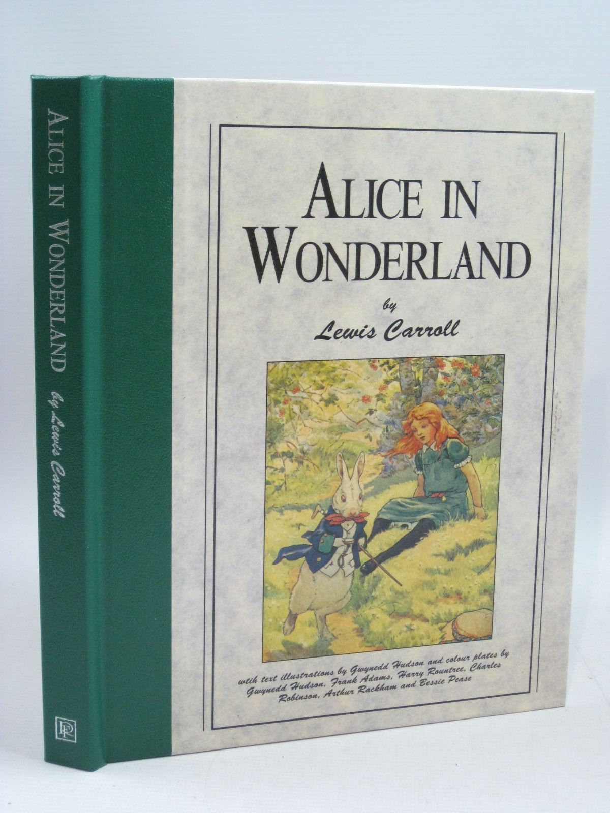 Very good condition. Illustrated classics series with a gallery of pictures from well-loved artists. Green cloth spine with silver title, pictorial glazed boards. Lower corner of each page on the left has a small illustration of green & white Mad Hatter, and a small illustration of green & white White Rabbit on the right lower corner. 179 numbered pages plus a few blank pages to rear. Picture gallery in the centre of the book shows full page colour illustrations. B/w chapter headers & footers.