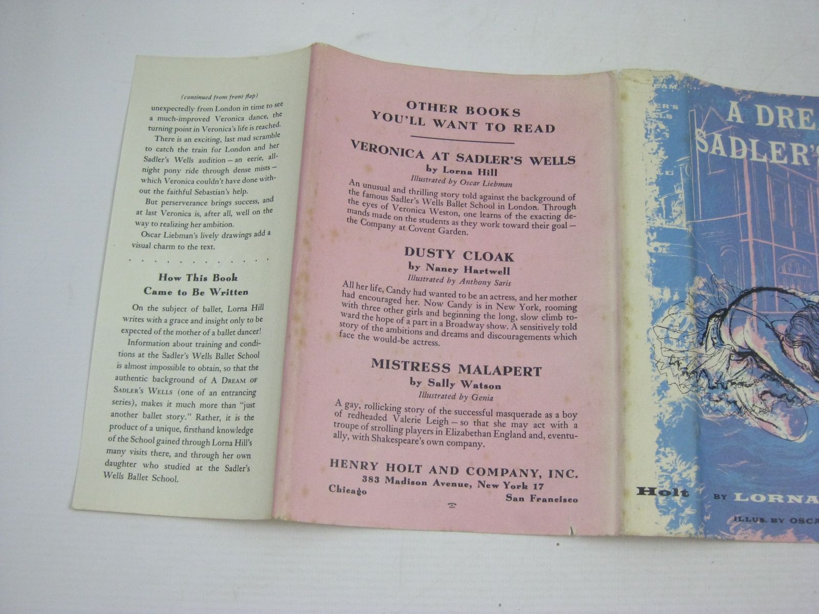 Very good condition in a almost very good dustwrapper. American edition. Veronica Watson's ambition is to become a ballet dancer. An orphan, she is sent to the north of England but manages to continue her ballet lessons and gains an audition at Sadler's Wells. Blue mottled boards with white titles to spine and white vignette to front board. B/w illustrations. 220 pages.