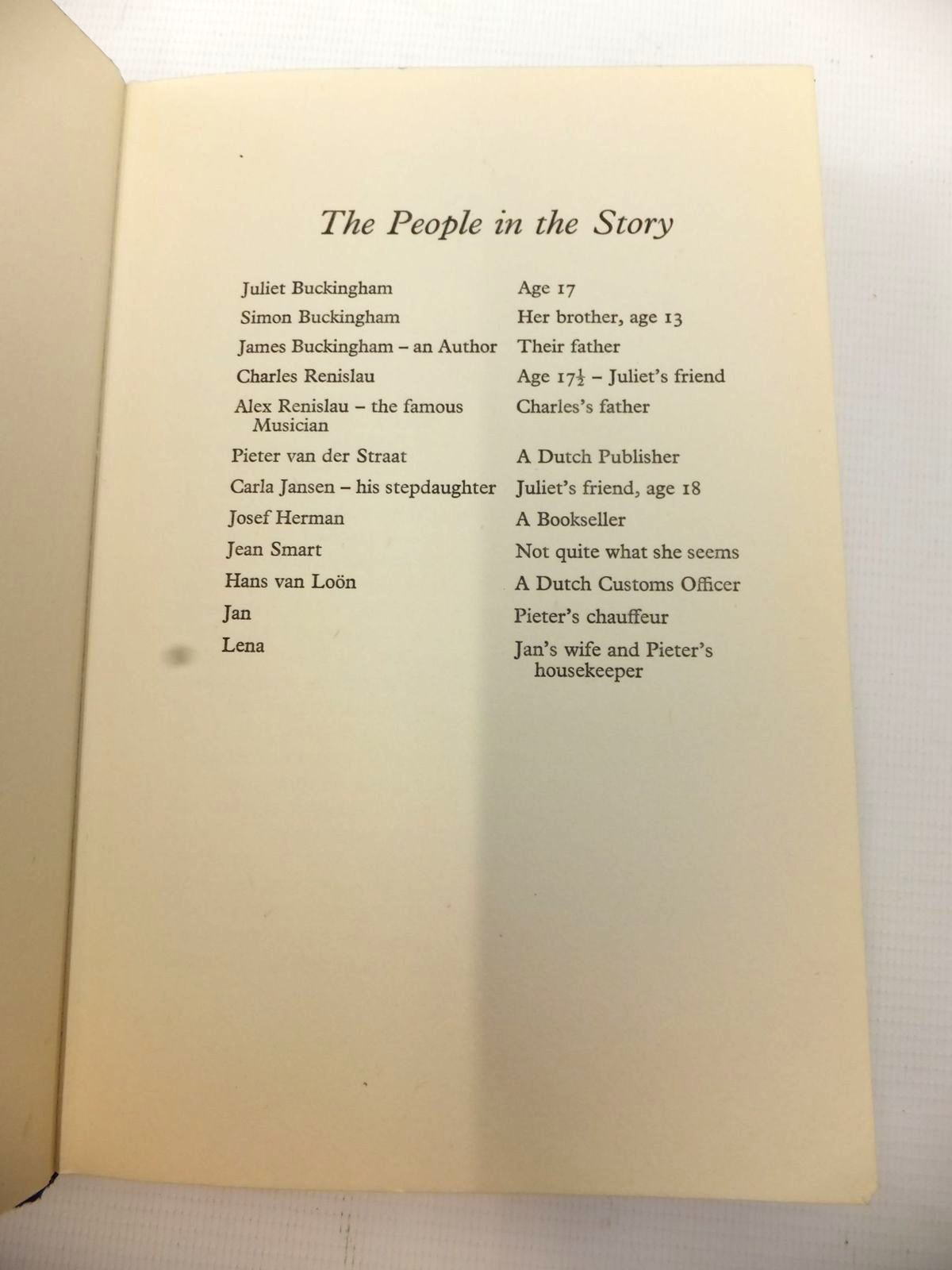Slightly better than very good condition in a slightly better than very good dustwrapper. Blue mottled boards, gilt title to spine. The Buckingham series. The story is set in the city of Amsterdam. A dramatic and intensely exciting story in which Juliet and Charles strengthen their romantic relationship and Simon, once again, helps to confound their enemies and proves his courage and loyalty to his family.