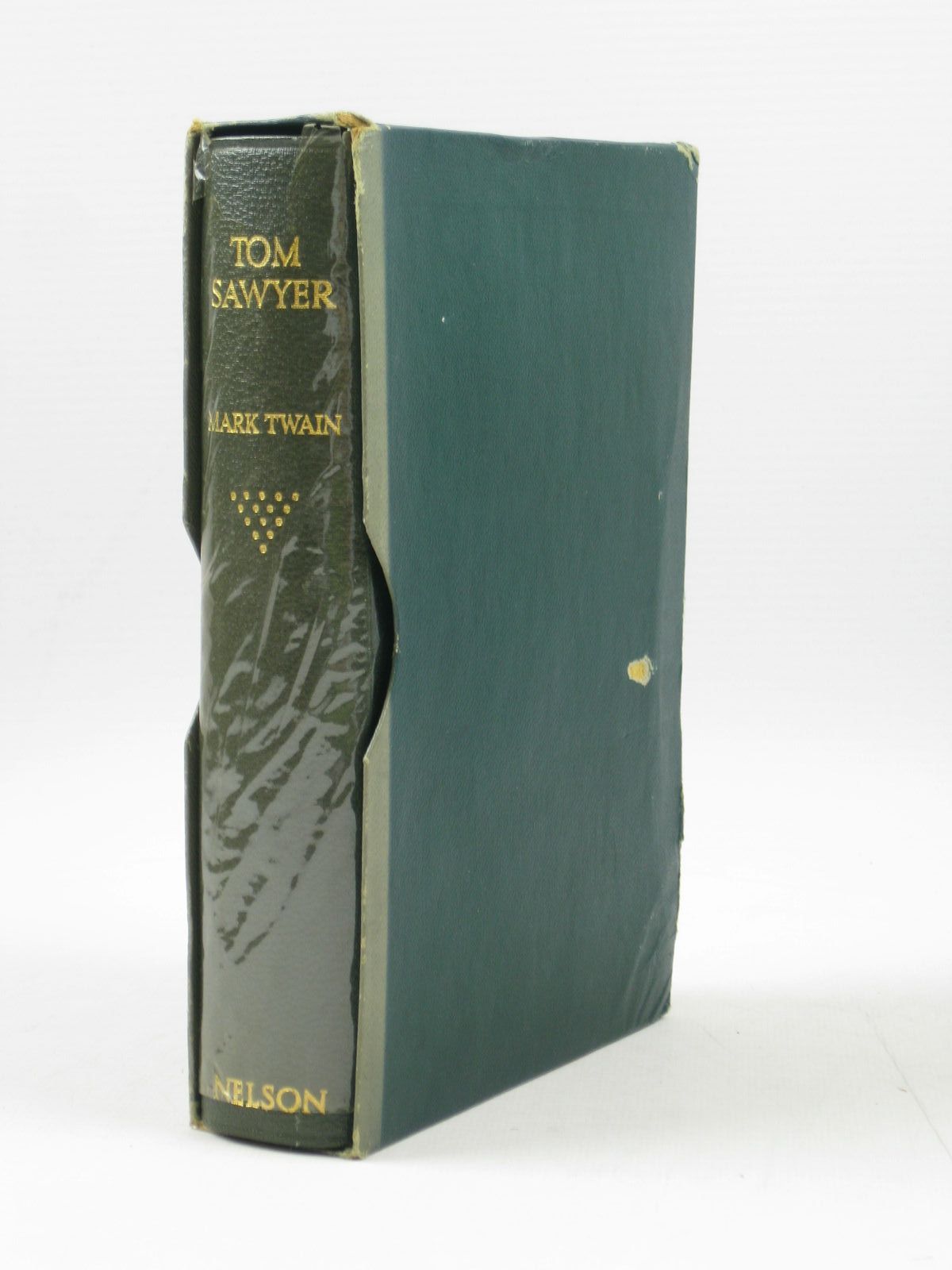 Endpapers very lightly browned. One gathering of pages is slightly mis-aligned with the rest of the book (slight binding error). Textblock is very slightly grubby. Original film wrapper (with grey paper flaps) is slightly edge chipped and creased with loss at top of spine. Contained in a green slipcase which is faded and worn at edges, small patch of damage to one side and wear to spine.