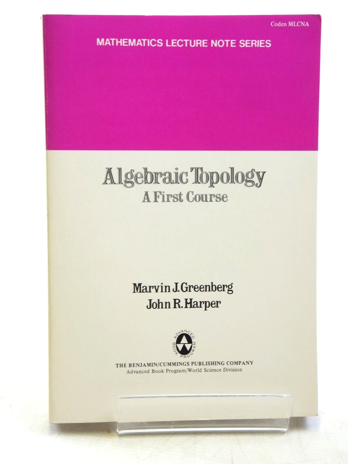 Slightly better than very good condition. Card wraps. Mathematics Lecture Note Series. This is a revision of Dr. Greenberg's 'Lectures on Algebraic Topology'. It is intended for a first-year course in algebraic topology and may be used as a supplement for a course in differential topology.