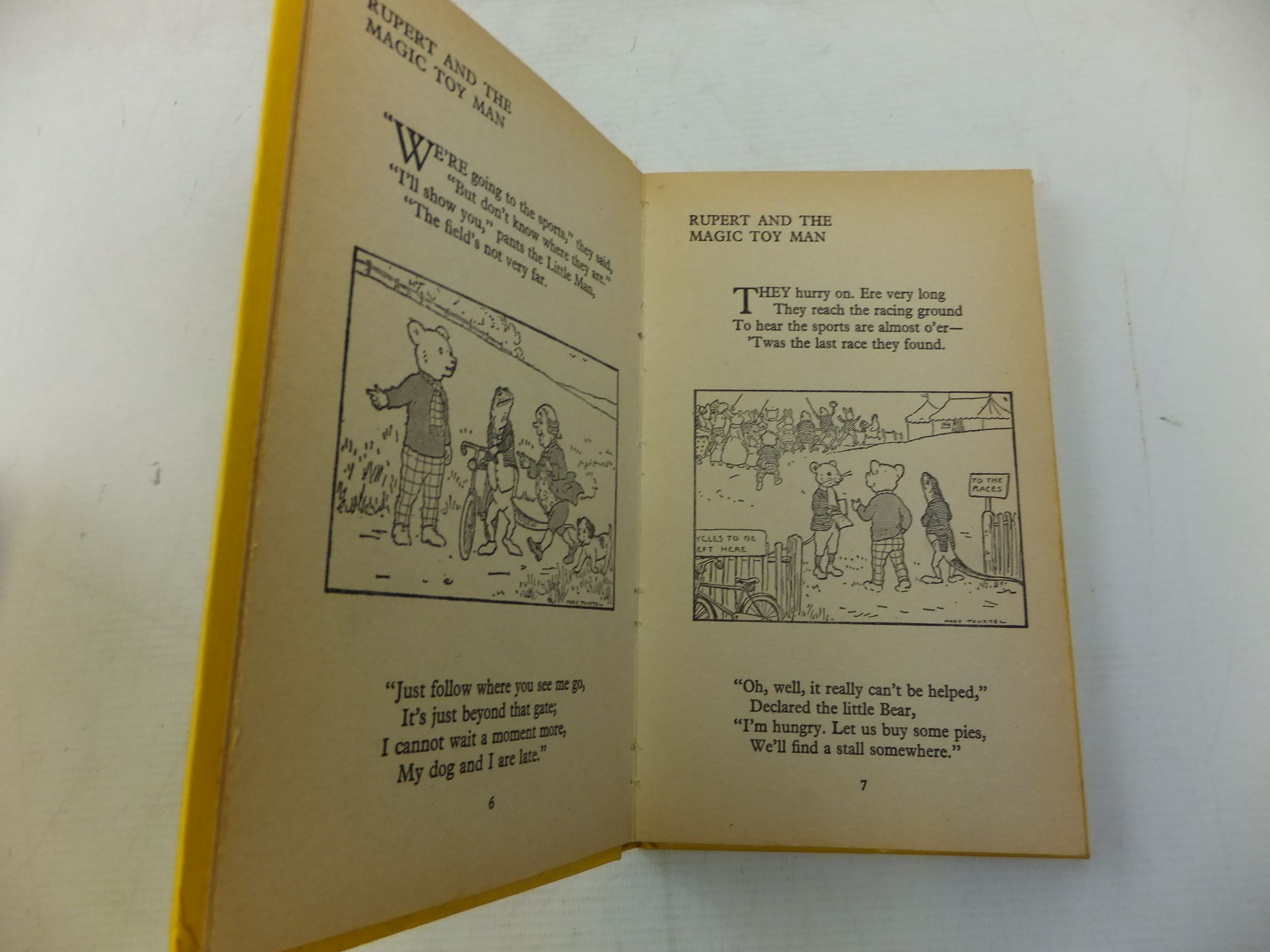 Slightly better than very good condition. Rupert and the Magic Toy Man. Yellow glazed pictorial boards.