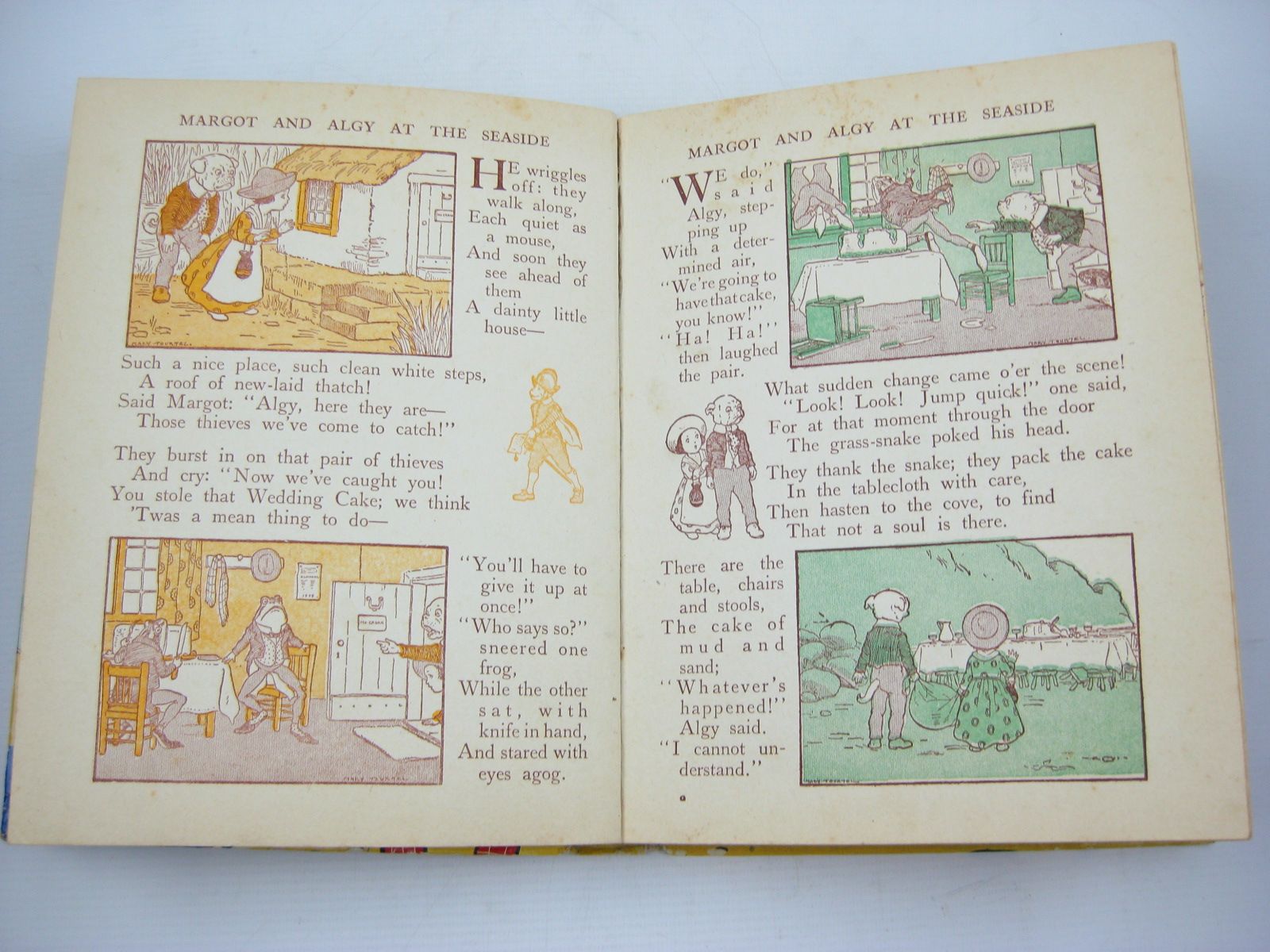 Spine and corners slightly bumped and worn. A few small marks to rear cover (look like crayon and small biro marks). Name in belongs to box. Light colouring to the pictures which are meant to be coloured in. Foxing, some fingering and pale page browning throughout. Unfortunately the frontis is missing from this copy.