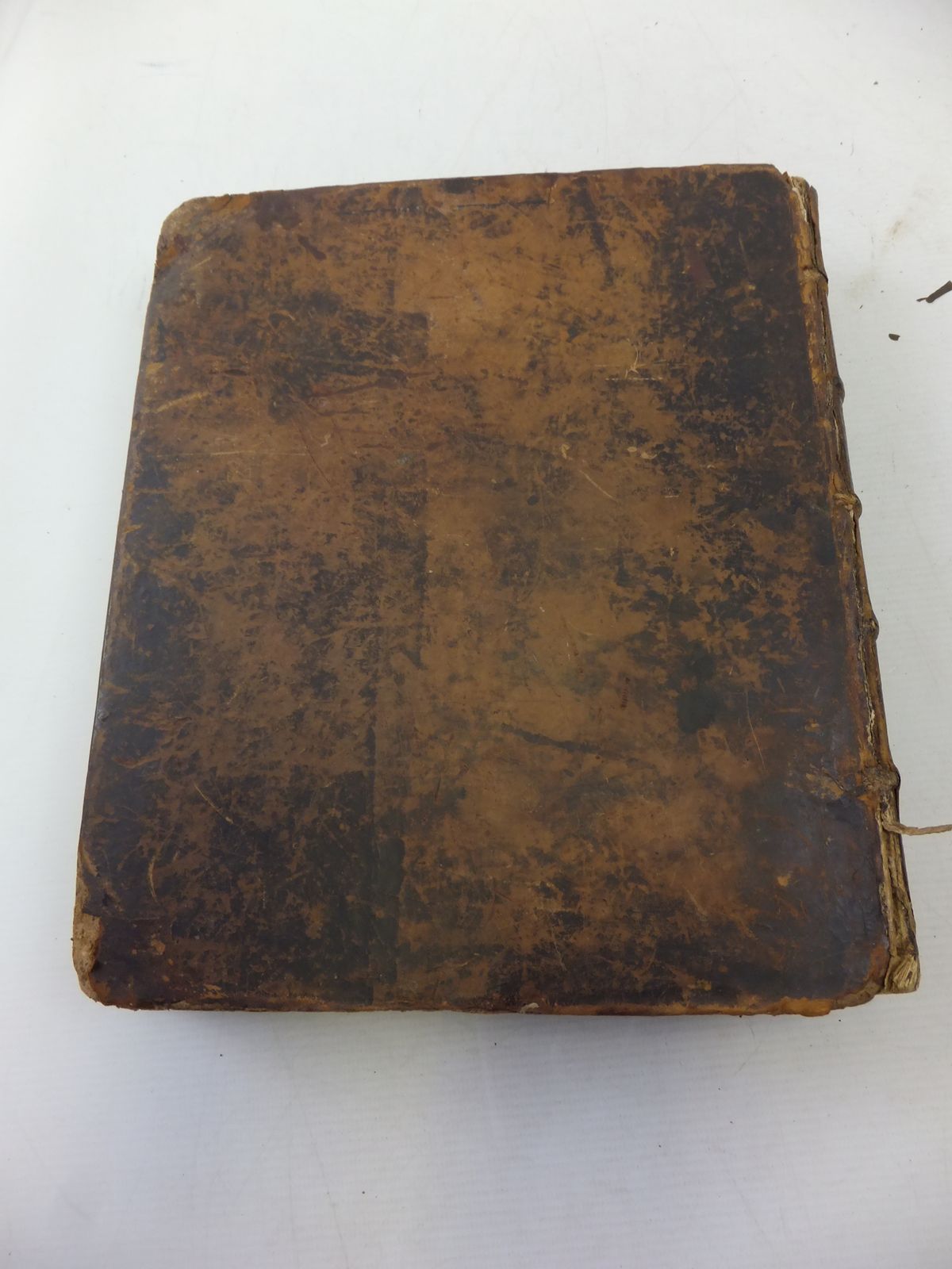 Boards and joints well worn. Binding is still tight. Pencil annotation filling the front pastedown as well as some marks (wax?). All plates are present. Plate 26 is detached and worn at edges. Contents are very grubby. Index pages partially detached.