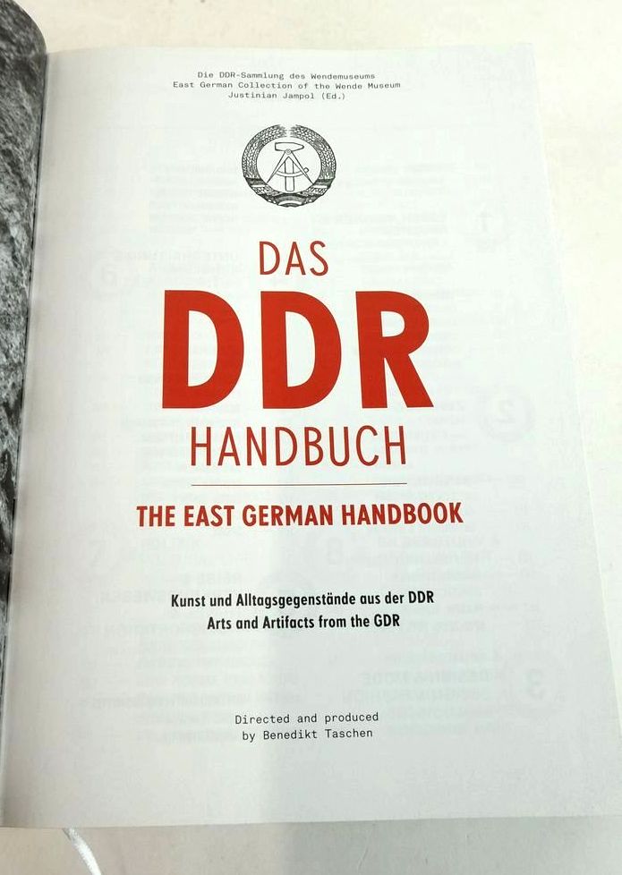 Nearly fine condition. Artworks, artifacts, and everyday objects from East Germany 1949-1989. A travel guide to a vanished country. Text in German and English. Stiff cloth boards in the colours of the flag and circular onlay to front. Colour and b/w photos and illustrations throughout. 815 pages.