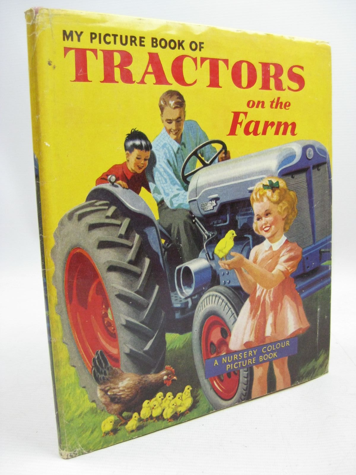 Very good condition in a almost very good dustwrapper. A Nursery Colour Picture Book. Red cloth spine. Pictorial boards. Front cover shows boy and his Dad on tractor with girl and chicks. Colour illustrations.