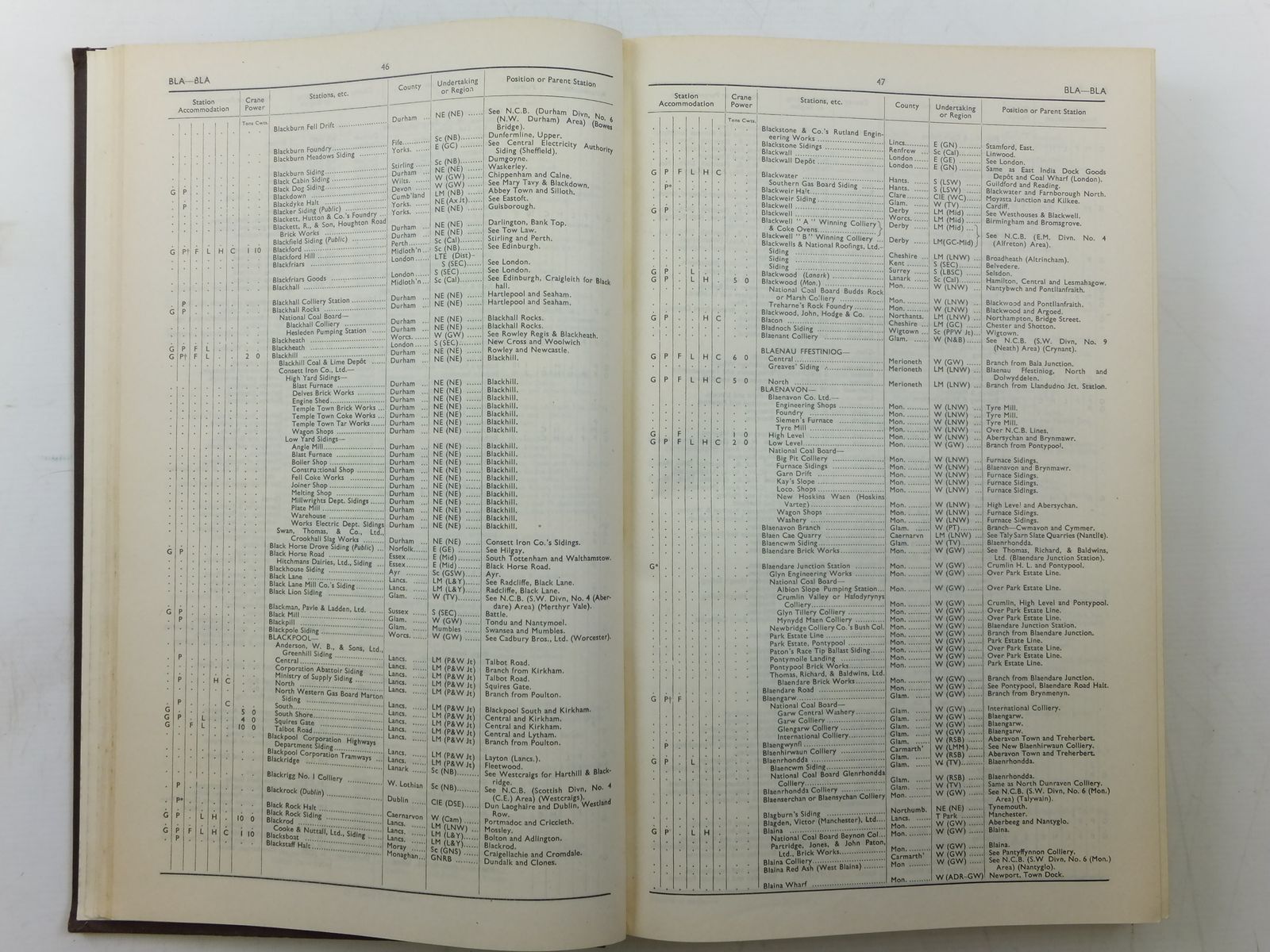 Almost very good condition. Including Junctions, Sidings, Colliers, Works, Etc., on the Railways in Great Britain and Ireland Showing the Station Accommodation, Crane Power, County, Company and Position. Large format. Brown cloth, gilt titles. 494 pages.