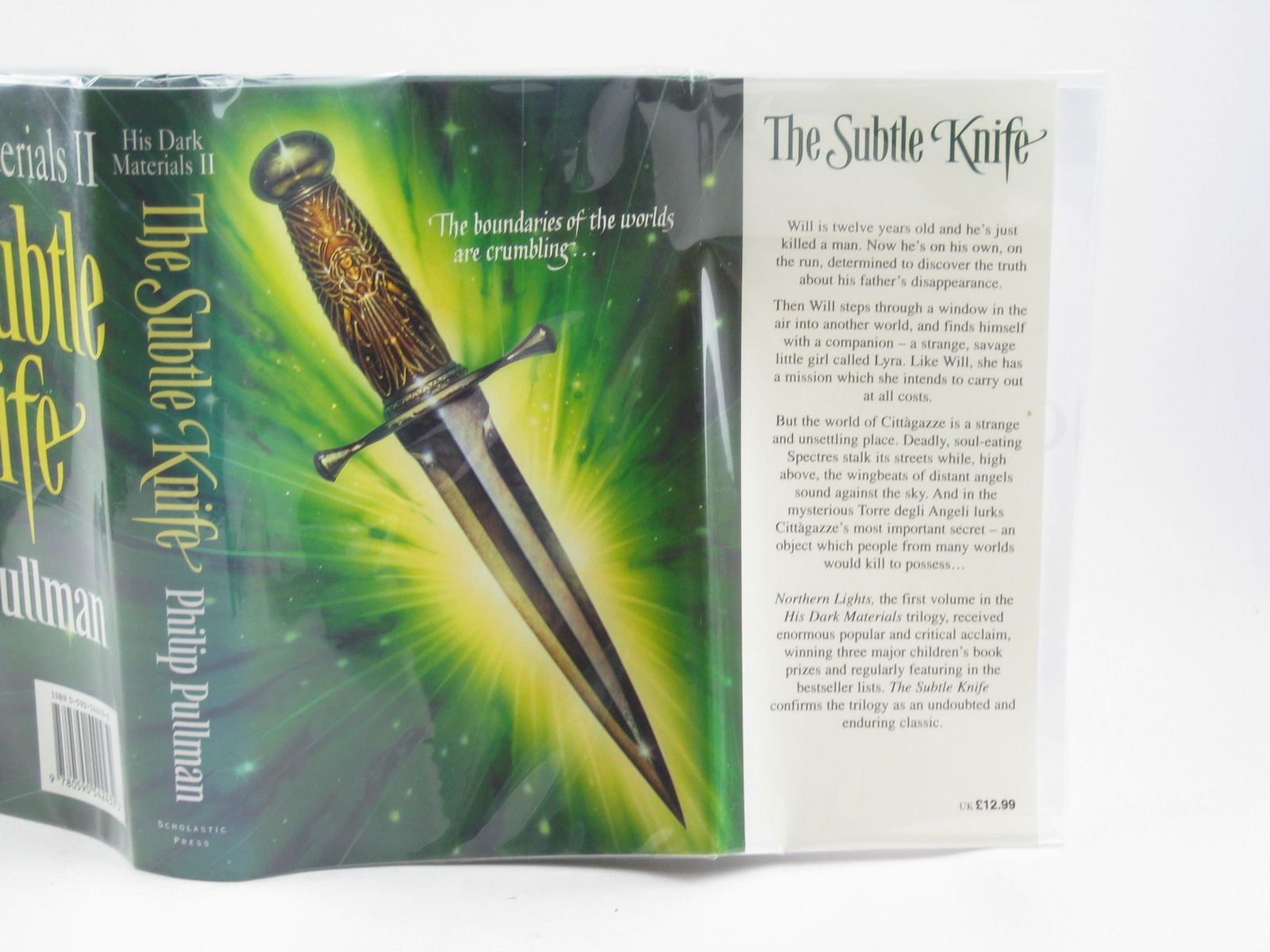 Nearly fine condition in a nearly fine dustwrapper. Hardback. 2nd book in His Dark Materials Trilogy. Green boards with gilt title to spine and vignette of knife to front cover.