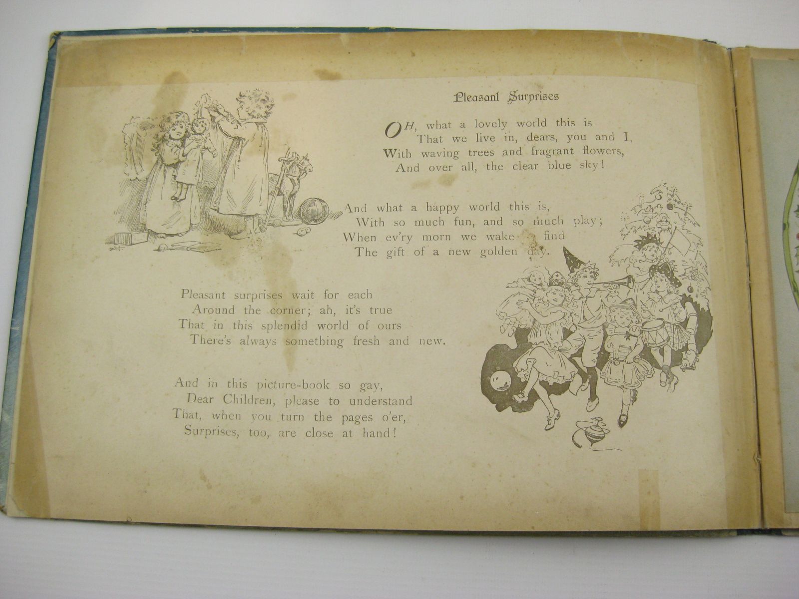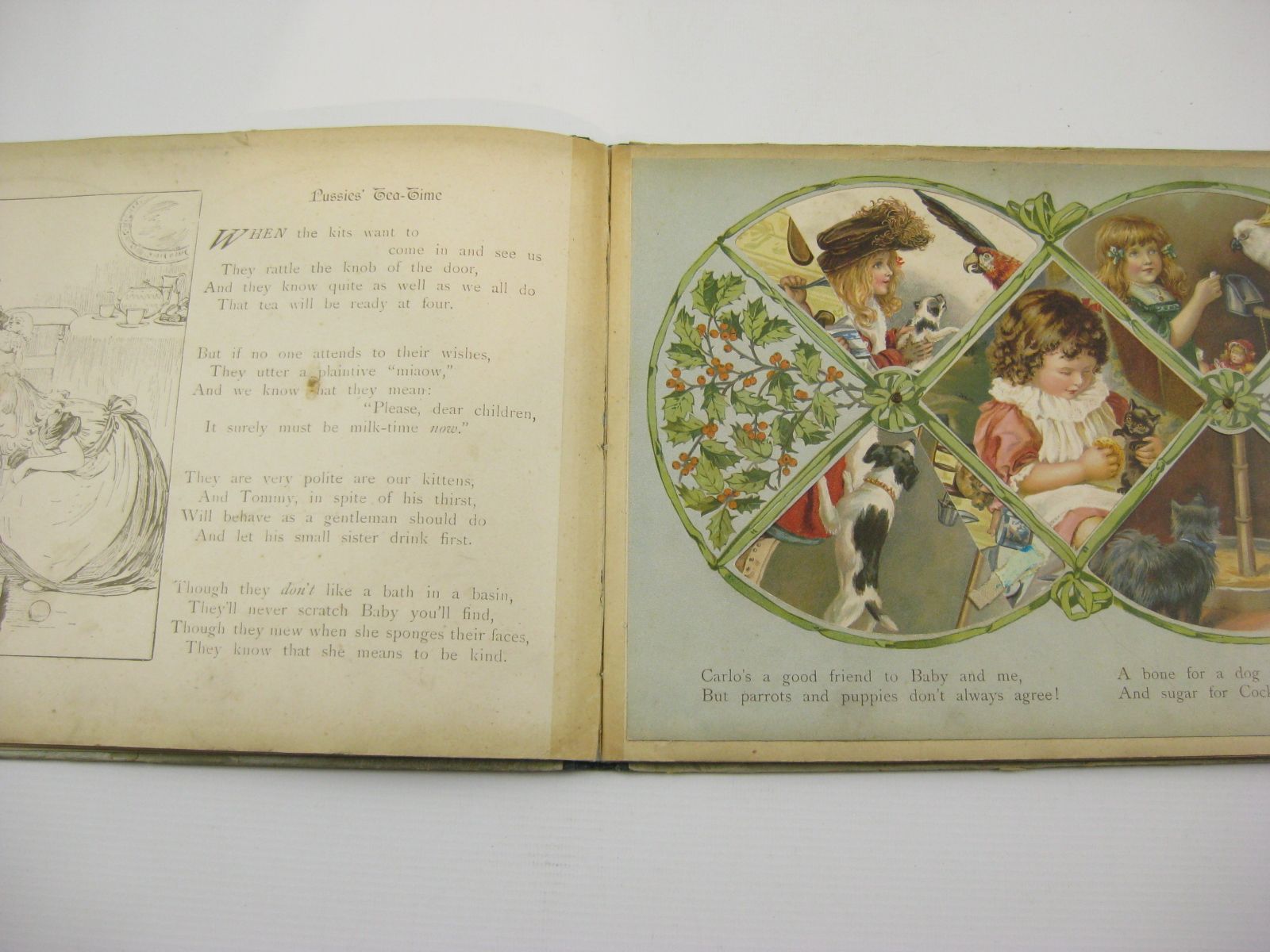 Spine bumped and worn. Corners worn, covers edge rubbed. A couple of large stains to front cover and a couple of small surface paper scuff marks to rear board. Inscription in ink to front endpaper. Hinges have been strengthened with clear tape, margins of title-page and a couple of other pages repaired. Some restitching. A few small rust spots to pages from metal pins in the middle of the moveable pictures. One of the tabs has been replaced and one has been repaired. The contents are a bit grubby from much fingering, still a decent copy of this scarce moveable book.
