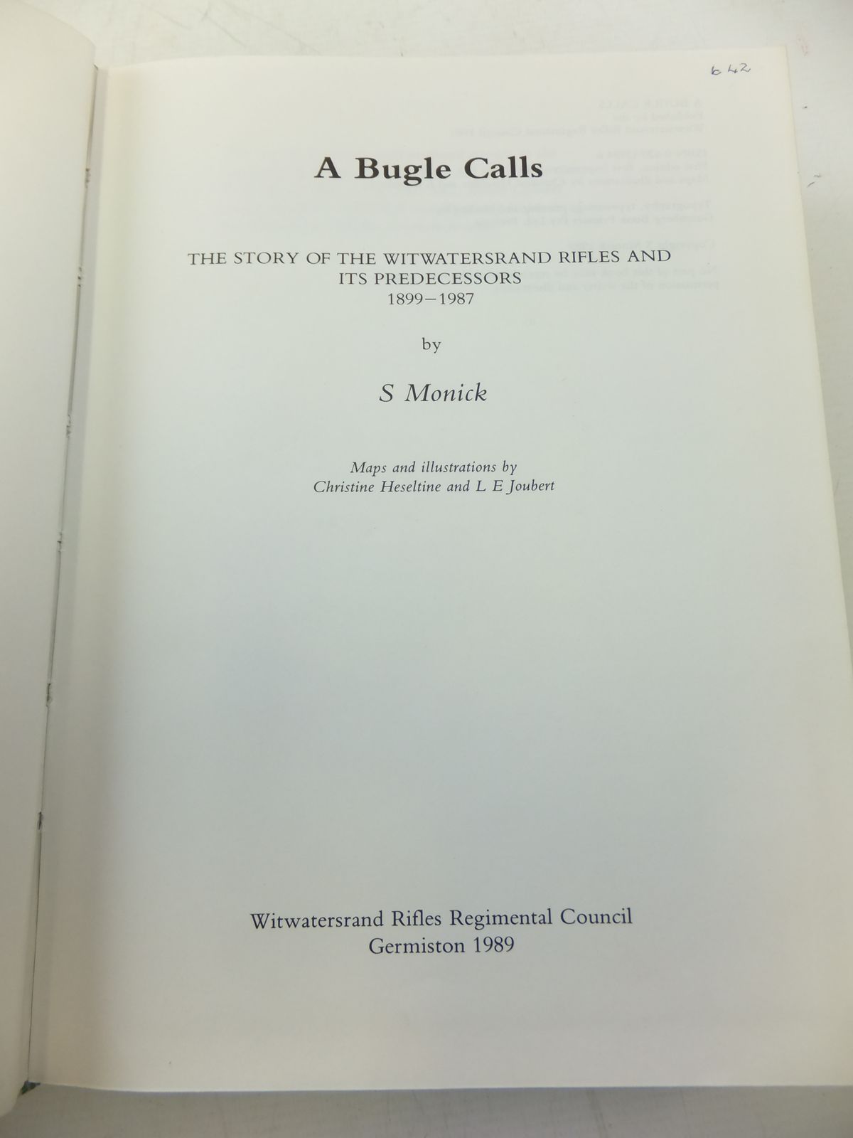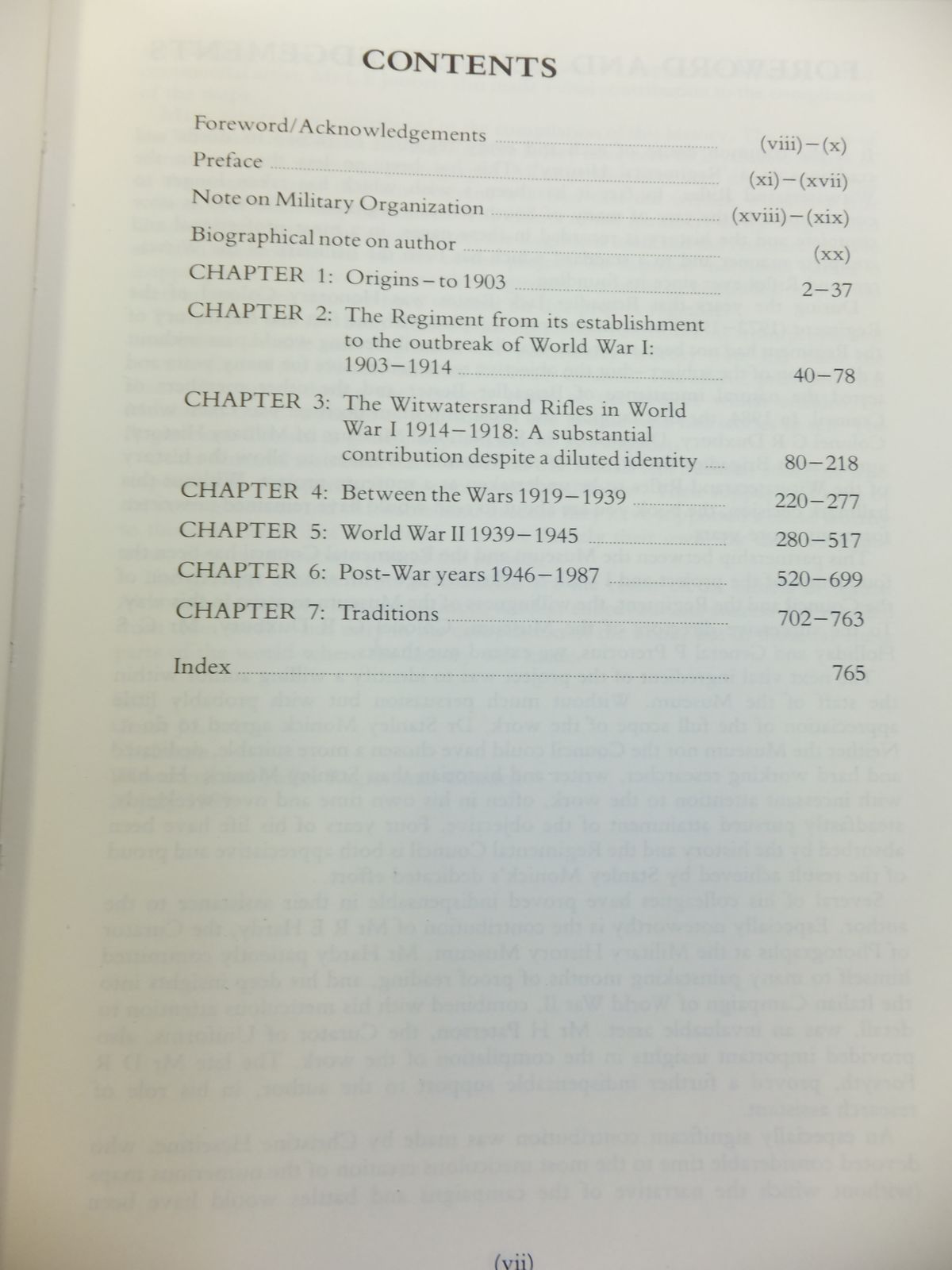 Nearly fine condition. The story of the Witwatersrand Rifles and its predecessors, 1899-1987. Dark green tartan boards. B/w maps and photos. 828 pages.