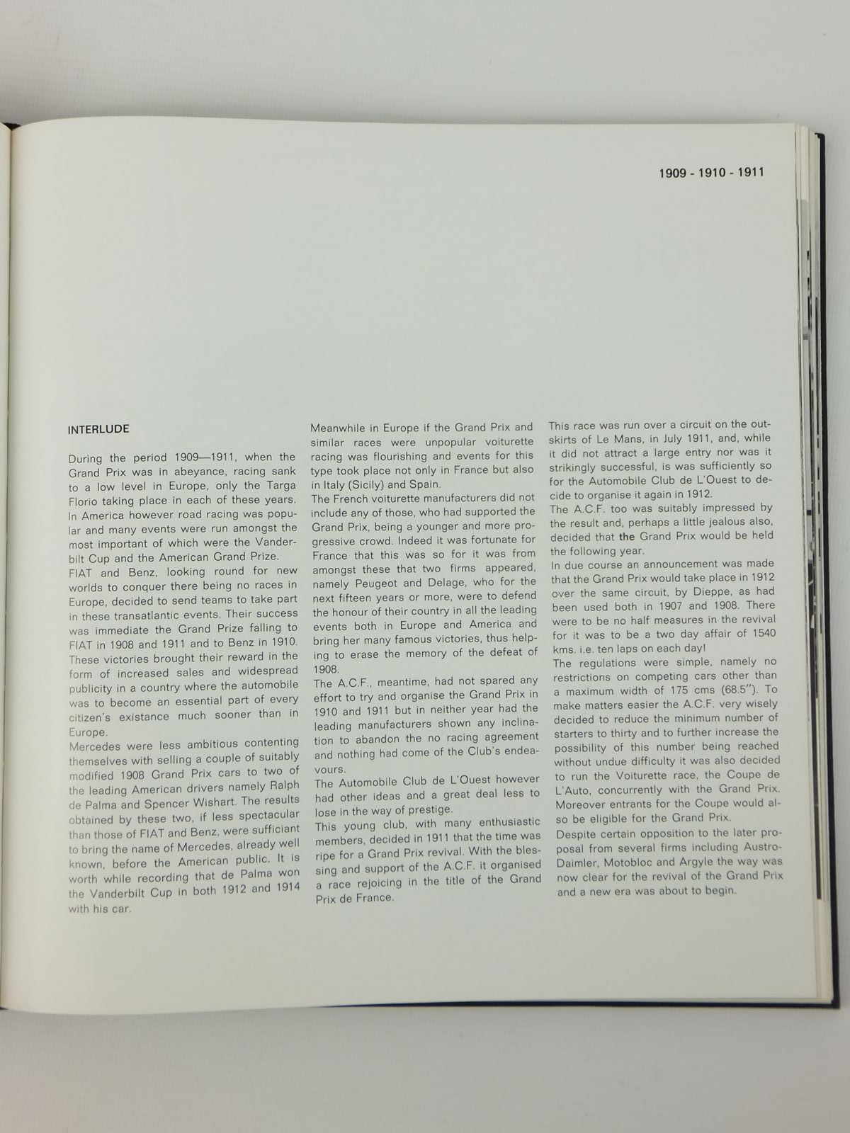 Nearly fine condition. A history of the Grand Prix De l'Automobile Club De France. Large square format. Black cloth, white title to spine. B/w photos.