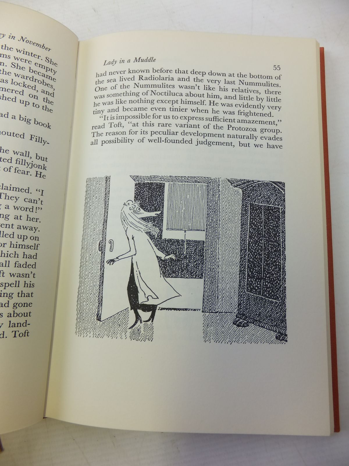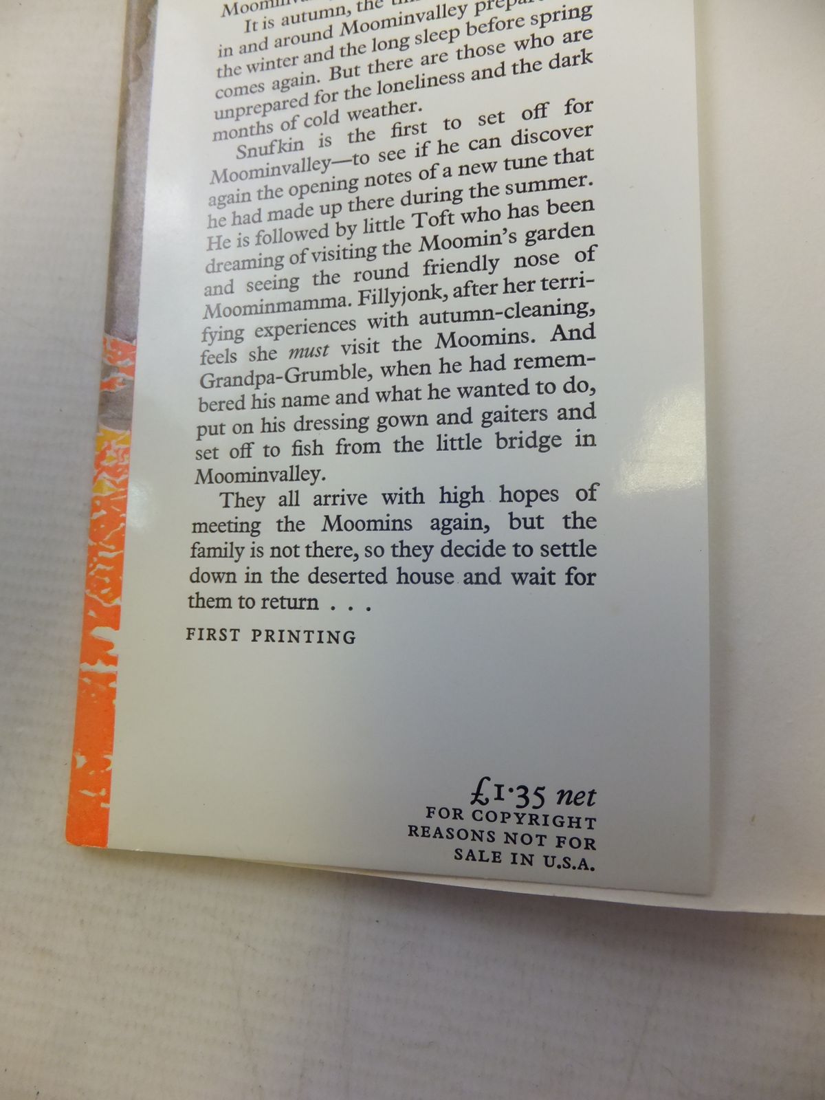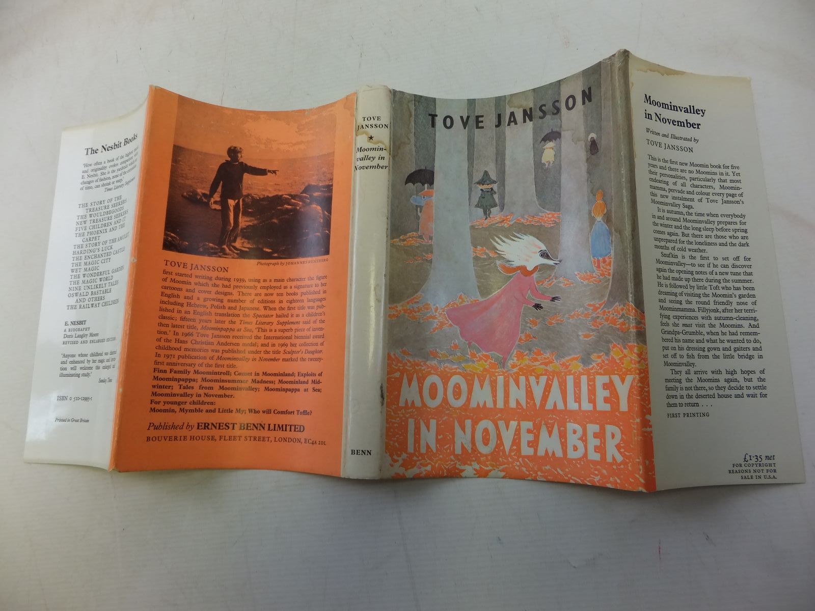 Very good condition in a almost very good dustwrapper. Peach boards, gilt title to spine. B/w illustrations. A Moomin book with no Moomins in it!