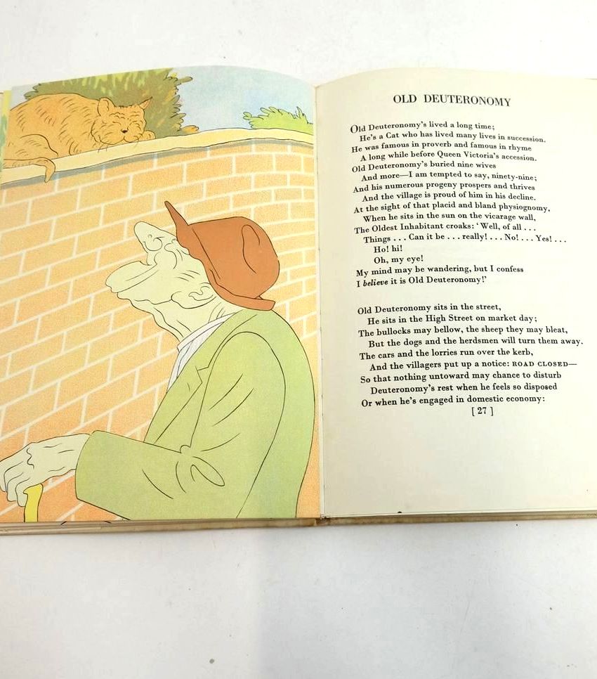Almost very good condition in a almost very good dustwrapper. a collection of whimsical light poems by T. S. Eliot about feline psychology and sociology. Cream cloth with red title to spine and picture of two cats dancing to front cover. Colour illustrations, 50 pages.