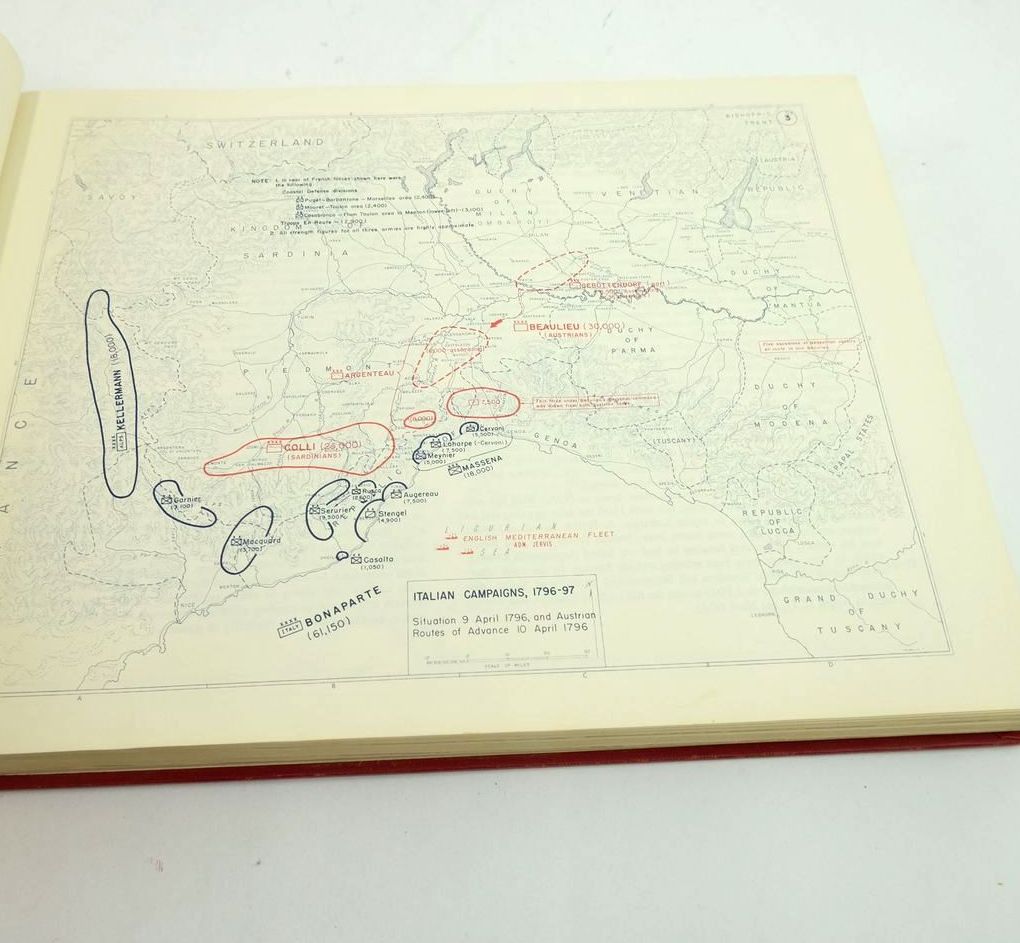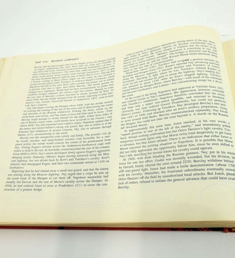 Very good condition. Large oblong format. Red cloth boards, gilt titles, portrait of napoleon in black to front board. Font in blue and maps printed in blue and red. Reprint of the 1968 edition.