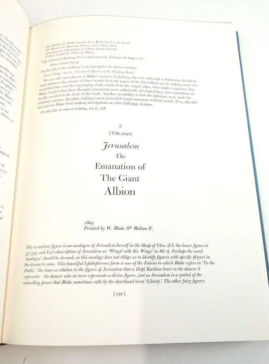 Nearly fine condition. Large format. Maroon leather spine with gilt title. Blue shiny silk covers. Published in association with the William Blake Trust. Blake's Illuminated Books Volume 1. Edited and with an introduction and notes by Paley. Colour plates.