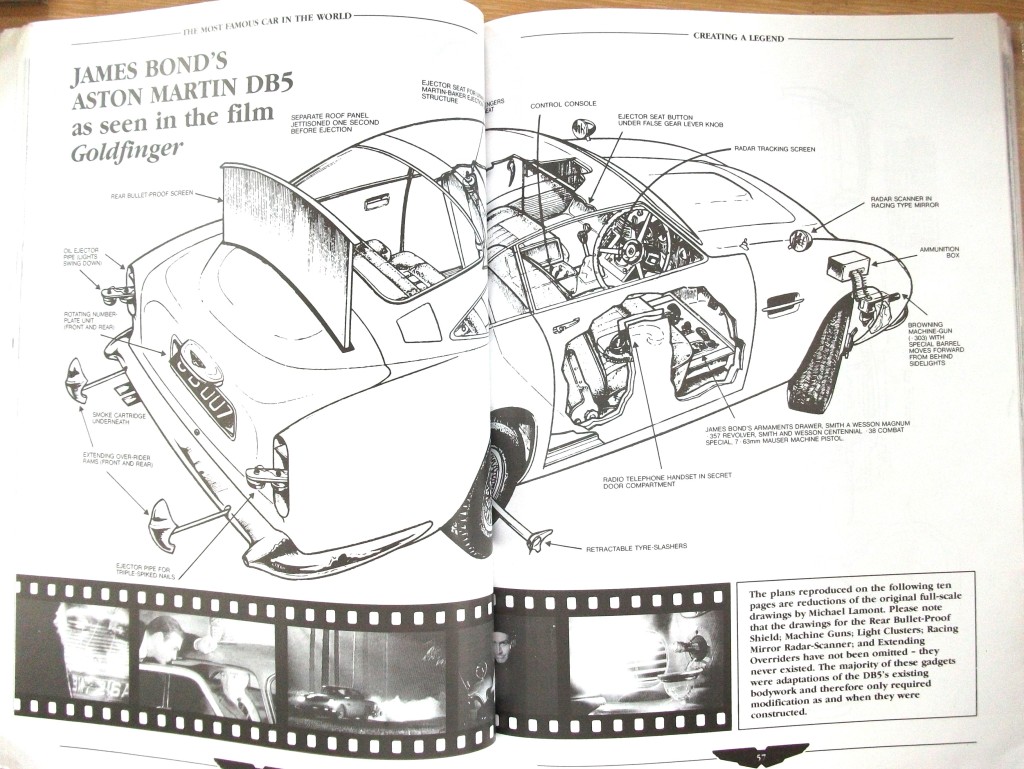 When this book was written in 1993, the DB5 had only been used in two films, ‘Goldfinger’ and ‘Thunderball’. However, Aston were initially not particularly interested, and the project nearly didn’t get off the ground. In the summer of 1963, it took much persuasion by Harry Saltzman co producer, special effects supervisor John Stears and production designer Ken Adam, before a compromise was reached, and Aston Martin loaned the R&D DB5.