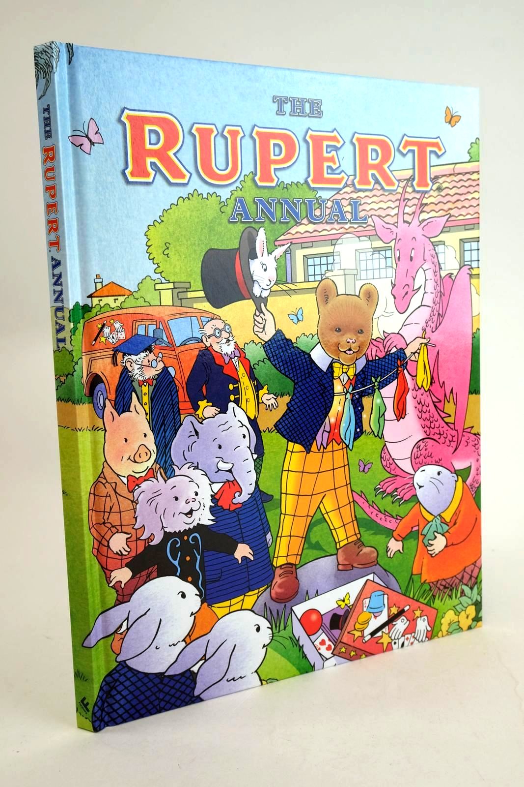 Laminated boards - front cover shows Rupert on a rock waving a camera. 1st story Rupert and the Dover Sole. Magic Painting pages. 114 pages. 10 x 7 inches. No facsimile produced for this year. Spine and corners slightly bumped. Date (partially erased) to top edge of front cover. Spine lightly browned. Child's name and address written in belongs to box in ink (and name again in pencil). Price NOT cut. Magic Paintings DONE. Rear pastedown is damaged at edges - partially removed.