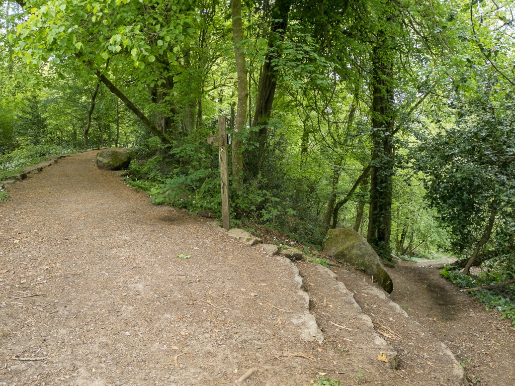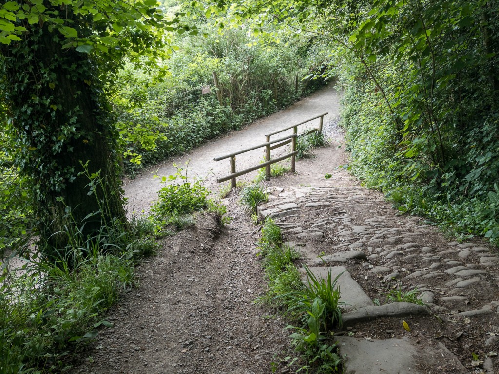 The walk approaching from Tintern is across the ancient wireworks bridge over the river Wye, along the end of what is now known as the Greenway track (the old railway track). About 150 metres along this track is a turn off to the left, up a steep rocky path which you need to traverse. If you are cycling, I am afraid you will need to carry your bike up this short stretch. It usually leaves me out of puff and I am not carrying a bike! (It’s actually not that bad, honest! See photo below). From this point, there are several ways in which to get to the pulpit, the one I am familiar with and is more strenuous than a molehill, is sign-posted (I believe – it is a long time since I tried it!).
