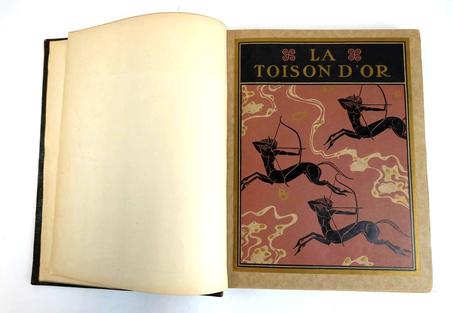 Very good condition. Large format. Green leather binding with gilt title to spine and gilt, black and red decorations to front cover. Limited edition to 1300 copies. Original wrappers have been bound in to front and back of book (to endpapers). Mounted colour plates with captioned tissue-guards.